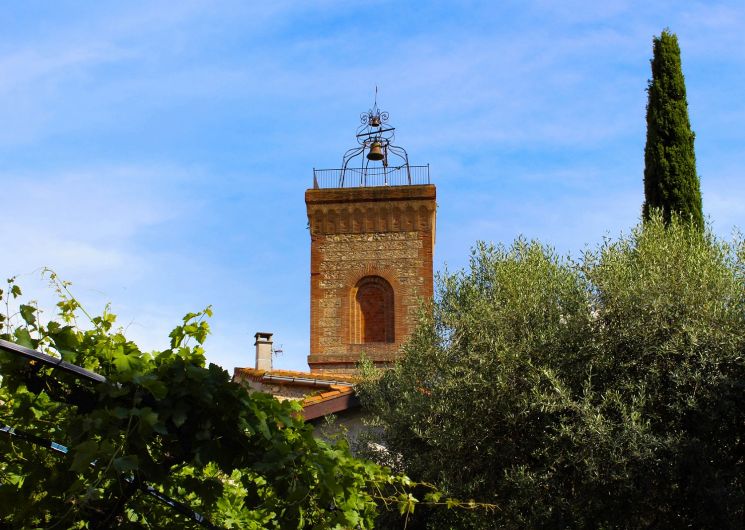 De son aménagement dans une salle de l’ancien château, cette église conserve des caractéristiques telles que l’absence d’abside et une nef très large. Le clocher à trois étages, distinct de l’édifice, est un ajout de la fin du 19ème siècle.