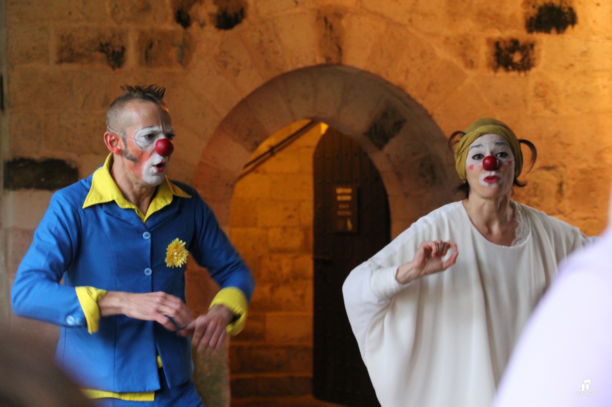 Vous ne les connaissez pas ? Venez rencontrer Bombyx et Luna, des guides pas comme les autres ! En suivant ces deux clowns érudits dans les recoins de l’abbaye, abreuvez-vous de leur culture sur les temps médiévaux … mais attention à ce que vous absorbez, leur savoir est tordu, détourné, magnifié ! Alors à défaut d’étancher votre soif à leur puits de connaissance, vous assisterez, c’est sûr, à une visite unique et inoubliable : mêlant histoire et burlesque, informations scientifiques et fantaisistes, ils raviveront votre imaginaire et vous feront découvrir le cloître de Moissac comme vous ne l’avez jamais vu ! Un spectacle à consommer sans modération, pour petits et grands !