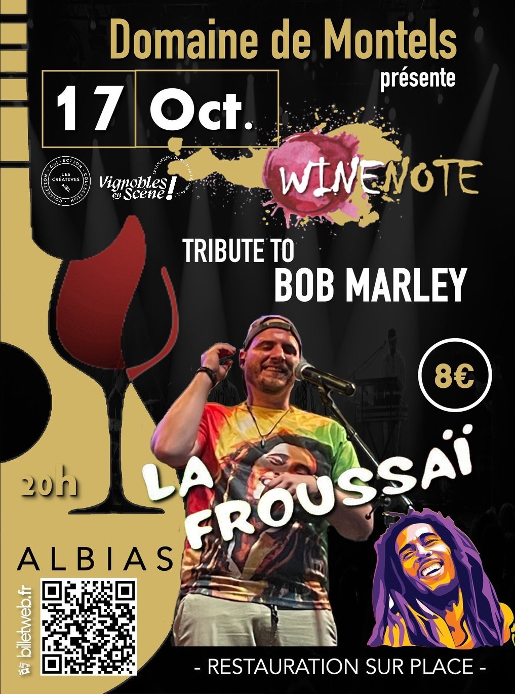 À 20h, place à la musique dans le grand chai du Domaine avec un concert tribute à Bob Marley – vibes reggae assurées !