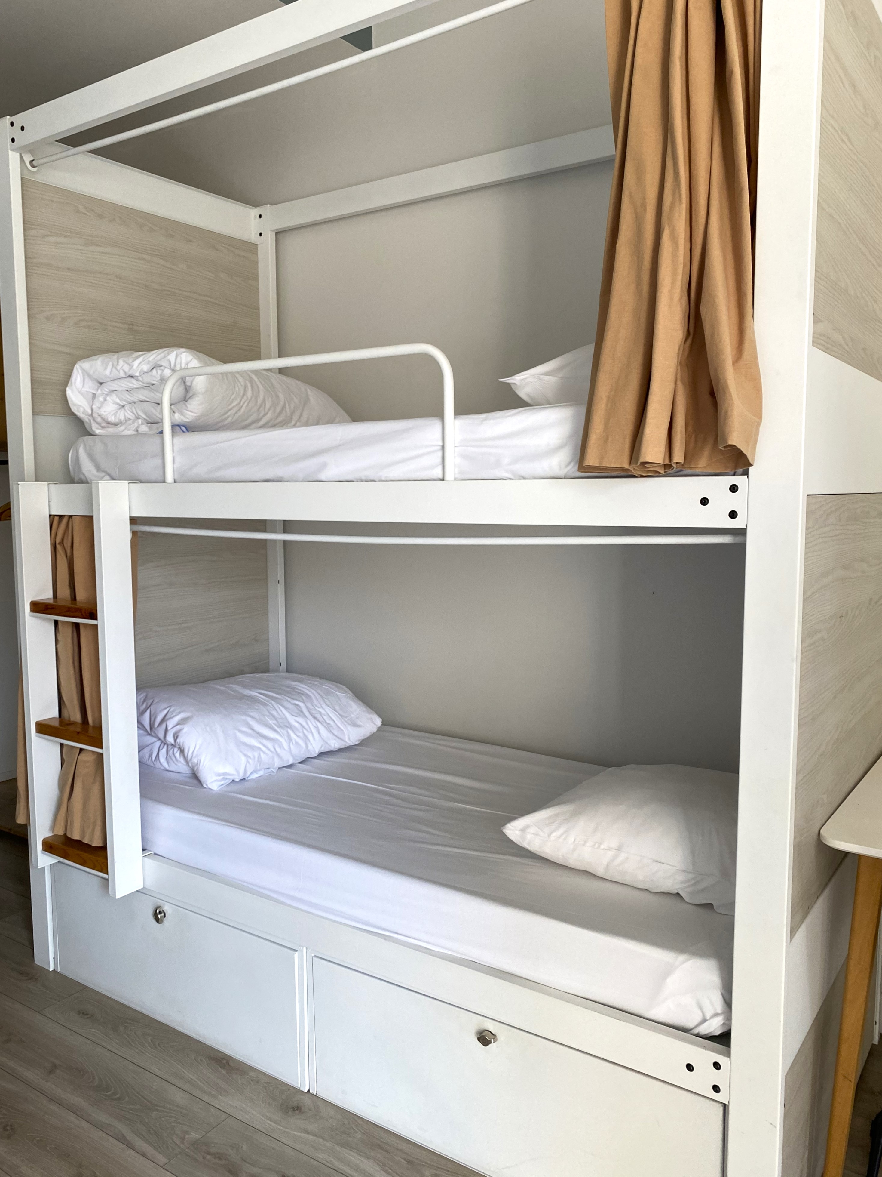 Georges Hostel est une auberge nouvelle génération, en plein cœur du centre ville de Sète (à quelques minutes à pied de la gare), dans un immeuble haussmannien entièrement rénové. 800 mètres carrés de convivialité et de décoration soignée, répartis sur 4 niveaux, dont 150 mètres carrés d’espaces communs, ouverts à tous, vous attendent en plein centre ville de Sète. Lits en dortoir, chambres privées, ainsi qu’un bar & healthy snack et des espaces communs (cuisine, salon, bibliothèque, patio fleuri…) afin de vous sentir comme chez vous ! Ce nouveau lieu tendance a à coeur de favoriser les échanges entre les voyageurs et les locaux ainsi que de promouvoir sa ville et sa région. Nuitée Lit en dortoir de 22 € à 29€. Nuitée en chambre double de 60 € à 89€. Nuitée en chambre pour 5 de 125 € à 160€.