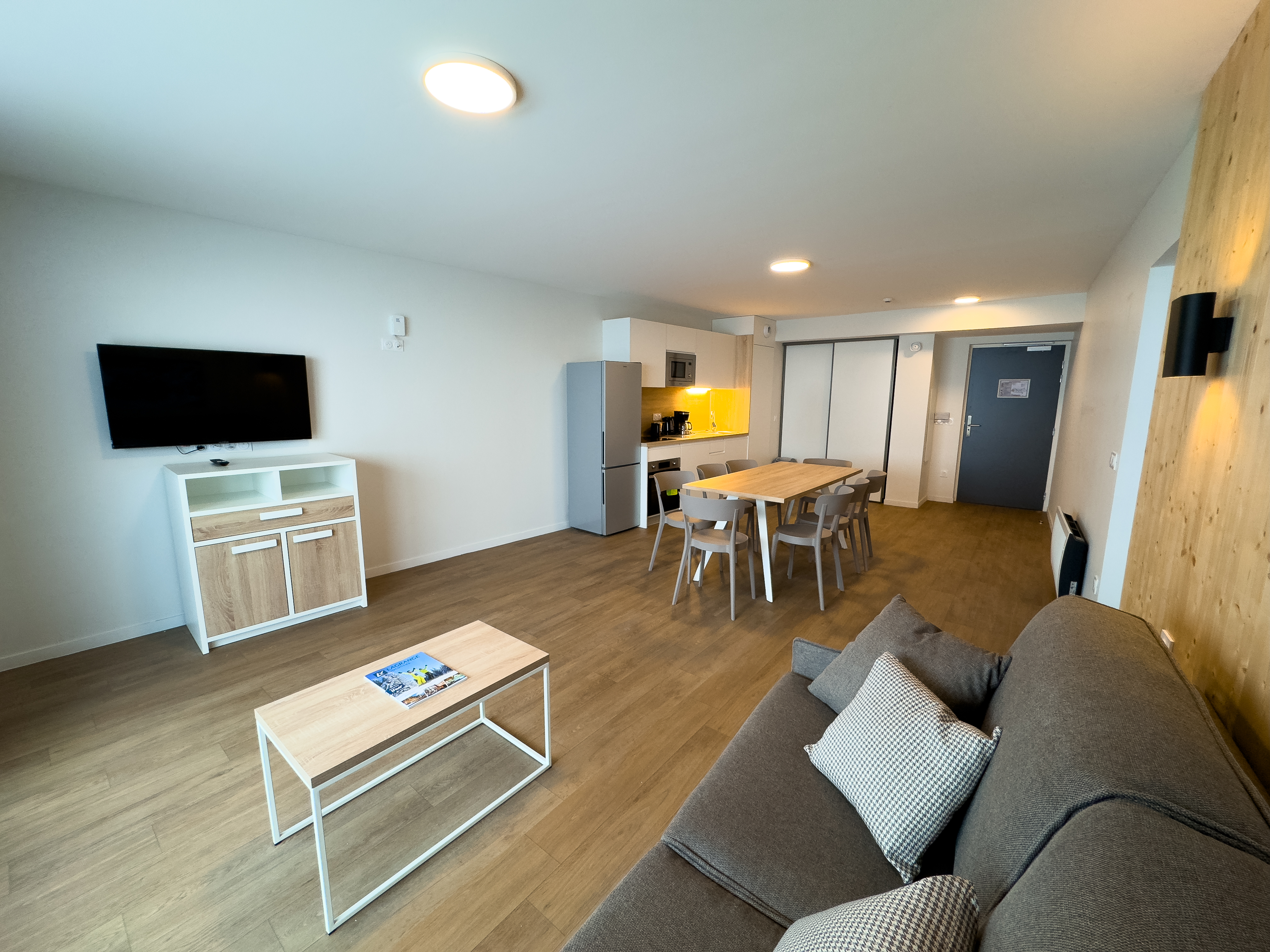 Tous les appartements sont équipés de Kitchenette avec four + micro-ondes (four combiné micro-ondes les studios et les deux pièces) + plaques vitrocéramiques + lave-vaisselle, terrasse. TYPE D’APPARTEMENT : S2 – Studio 2 pers., 20 m² – S2P – Studio 2 pers. premium, 20 m² – 24 – 2 pièces 4 pers., 35 m² – 24P – 2 pièces 4 pers. premium, 35 m² – 36 – 3 pièces 6 pers., 55 m² – 36P – 3 pièces 6 pers. premium, 55 m² – 48 – 4 pièces 8 pers., 75 m² – 510 – 5 pièces 10 pers., 110 m² – .Piscine couverte chauffée. .