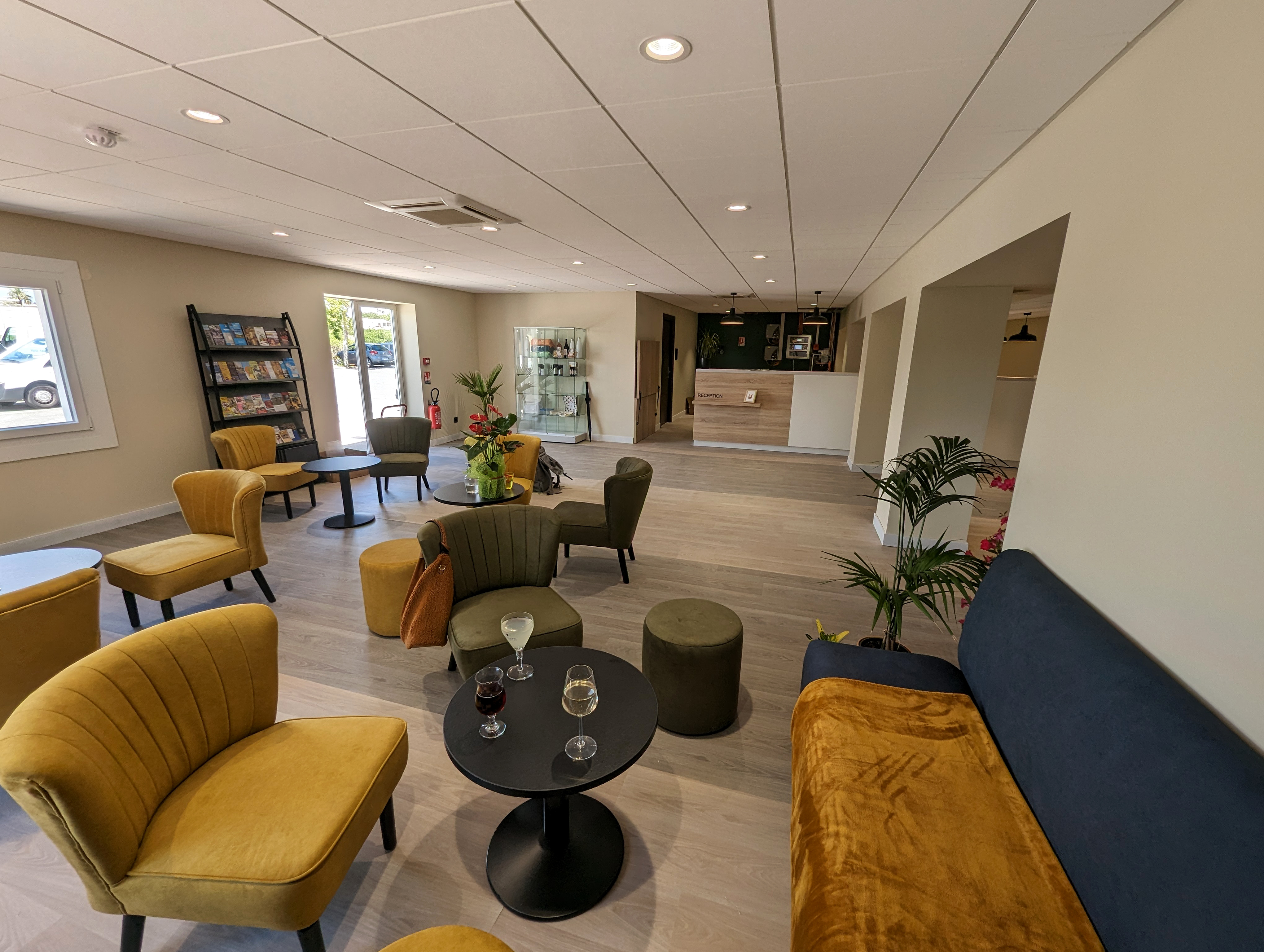 12 chambres de 2 à 3 personnes, accessibles aux personnes à mobilité réduite se trouvent au rez-de-chaussée. L’accueil, le restaurant et le bar sont de plain-pied, et la salle d’animation, située au 1er étage, est desservie par un ascenseur.