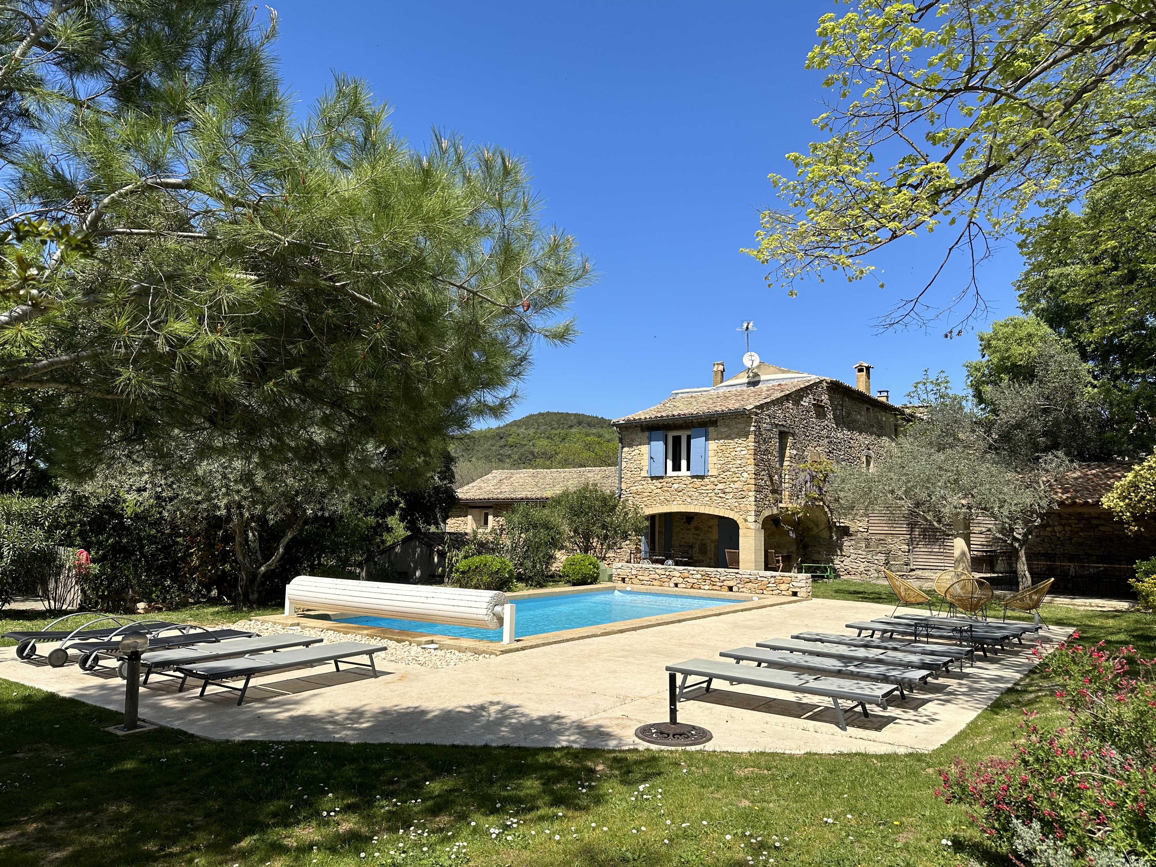 Superbe mas en pierre, 18 personnes, au milieu des vignes, grand jardin, piscine privée.