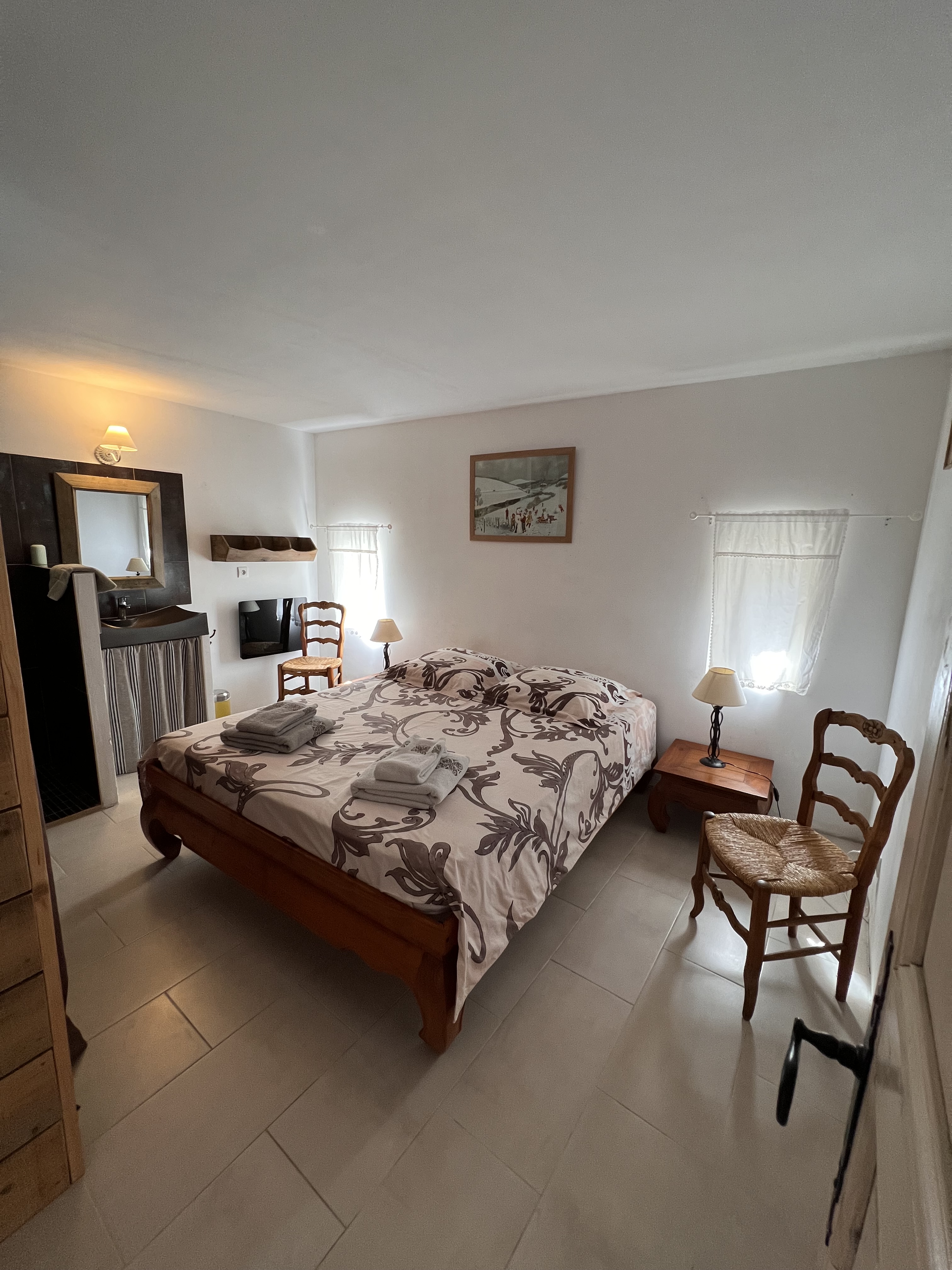 Superbe Mas en pierre composé de deux gîtes attenants, au milieu des vignes, avec vue dominante sur les collines, l’ensemble étant très bien équipé pour vous garantir un séjour agréable et un confort optimum :