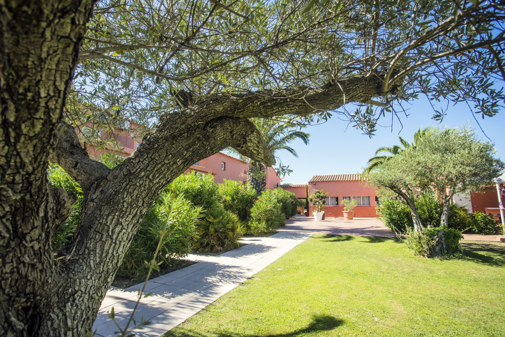 A 500 m de la plage et 1 km du centre, 44 studios et appartements dans un cadre privilégié tous équipés de salles de bain, TV et terrasse de 10 m2.