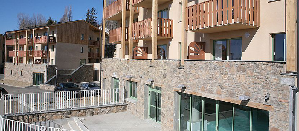 Résidence de 70 appartements de standing répartis sur 5 chalets, sur un domaine clos et arboré. Piscine intérieure chauffée, bains à remous et salle de sport (Accès libre et gratuit).