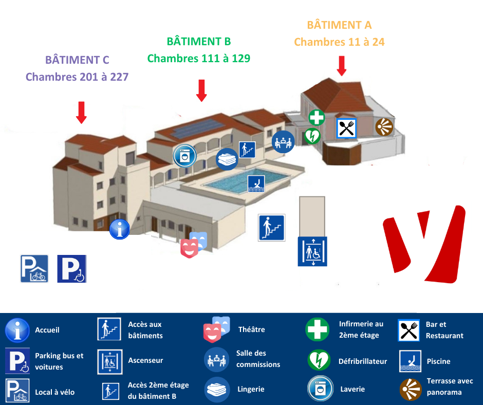 Nous disposons de 160 lits, d’un restaurant et bar, d’une grande piscine, d’un parking, d’un théâtre et d’espaces de réunion et de convivialité ainsi que d’une terrasse avec vue panoramique sur Avignon, le Rhône et le Mont Ventoux.