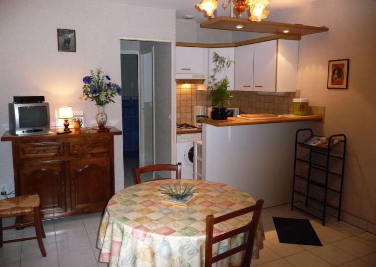 Salle de séjour/coin-cuisine, (1 canapé lit d’appoint 2 pl), 1 chambre (1 lit 1,40m), salle d’eau, wc. Autocuiseur et matériel bébé à la demande. Terrasse couverte, terrain non clos. Buanderie dans une dépendance.
