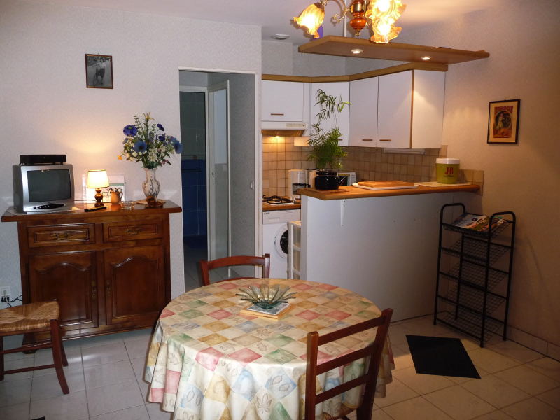 Salle de séjour/coin-cuisine, (1 canapé lit d’appoint 2 pl), 1 chambre (1 lit 1,40m), salle d’eau, wc. Autocuiseur et matériel bébé à la demande. Terrasse couverte, terrain non clos. Buanderie dans une dépendance.
