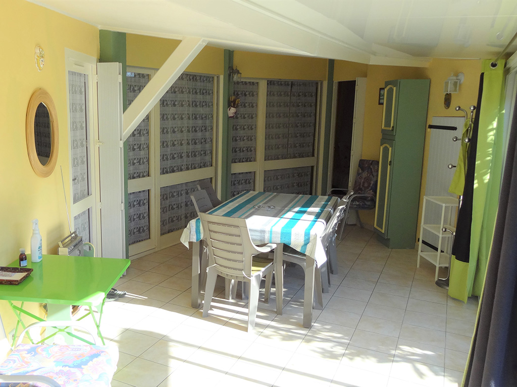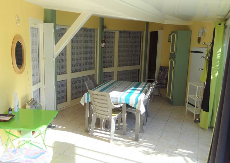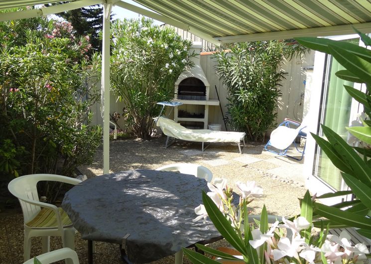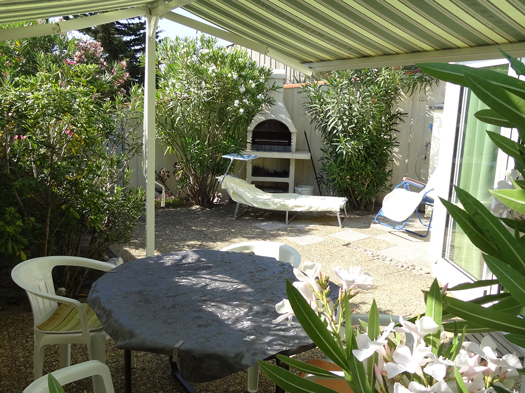 Au village des sables à 300m de la mer, villa type T3 avec véranda, cour arborée et fermée, sans vis-à-vis. Composée d’un coin cuisine, séjour, 2 chambres, 1 salle de bain et 1 salle d’eau, 2 WC. Équipements : climatisation, lave-linge, lave-vaisselle, four, micro-ondes, TV, grille-pain, aspirateur, fer et table à repasser, lit bébé, douche extérieure solaire. Parking, véranda, jardin, terrasse ombragée avec store, salon de jardin.
