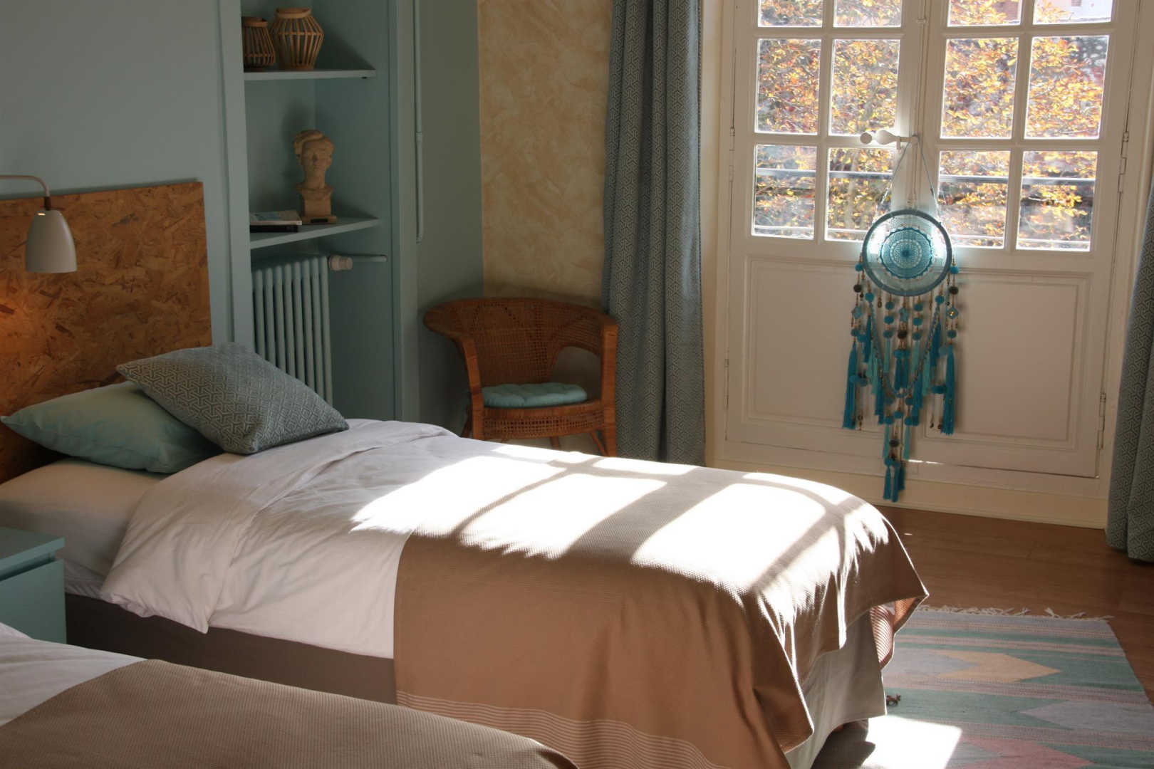 Ce gîte est idéalement placé en coeur de ville pour vous permettre un programme culture et détente de qualité. Une suite familiale pour 2 à 4 personnes (2 chambres) située au même étage dans l’autre aile de la maison peut également être mise à votre disposition pour permettre l’accueil de 8 à 9 personnes au total (Référence G2402).