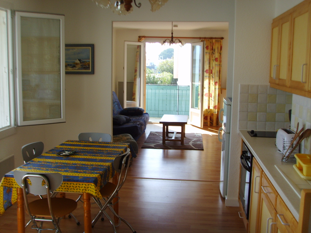 Au 1er et dernier étage d’une maison, de 4 appartements, cette location de 50 m2 avec parking privatif dans la cour, est composée, d’une cuisine équipée avec vue à l’est, d’un séjour avec balcon au sud, de deux chambres au nord, salle d’eau et wc séparé. L’appartement traversant est lumineux. Dans un quartier calme, à cinq minutes à pied du centre commercial et de la plage du boucanet.