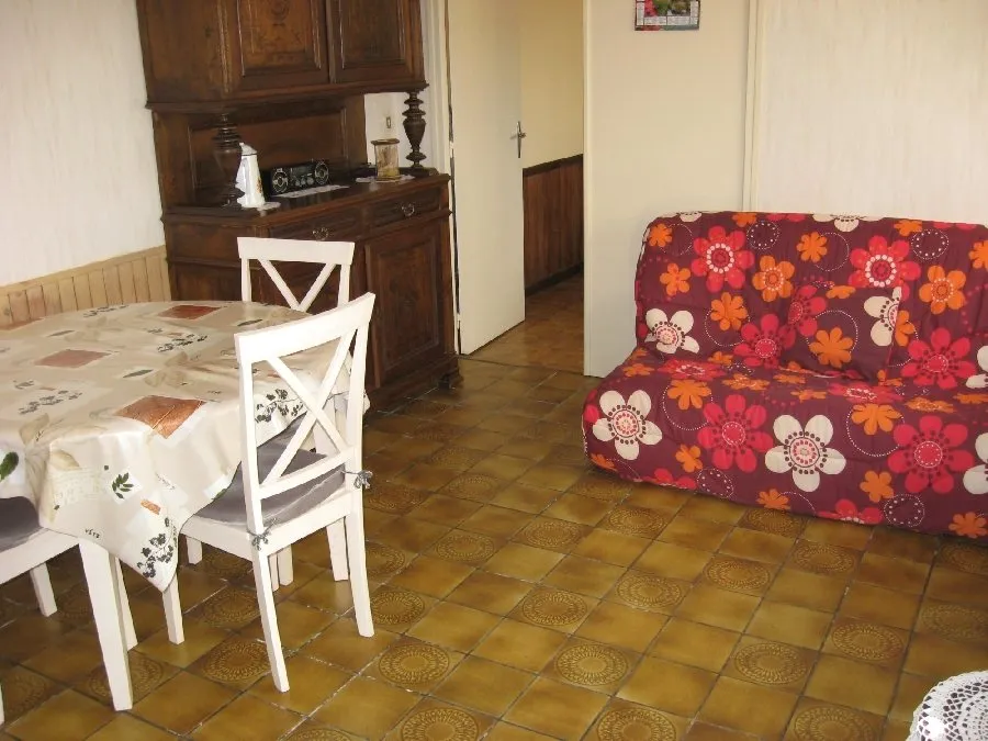 Une chambre complète, salle d’eau et WC, cuisine équipée avec lave-linge, séjour, canapé, télévision, jardin, salon, parasol, barbecue, lave-vaisselle et Wifi.