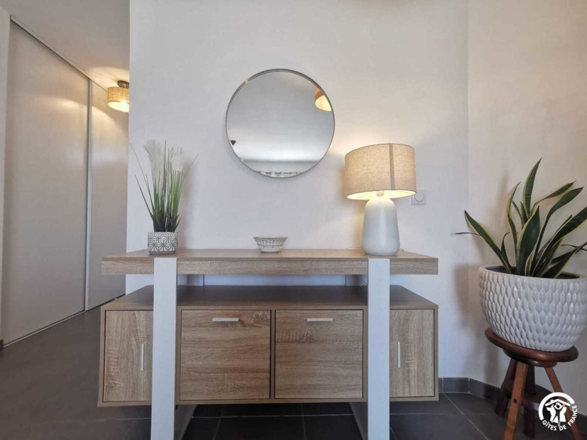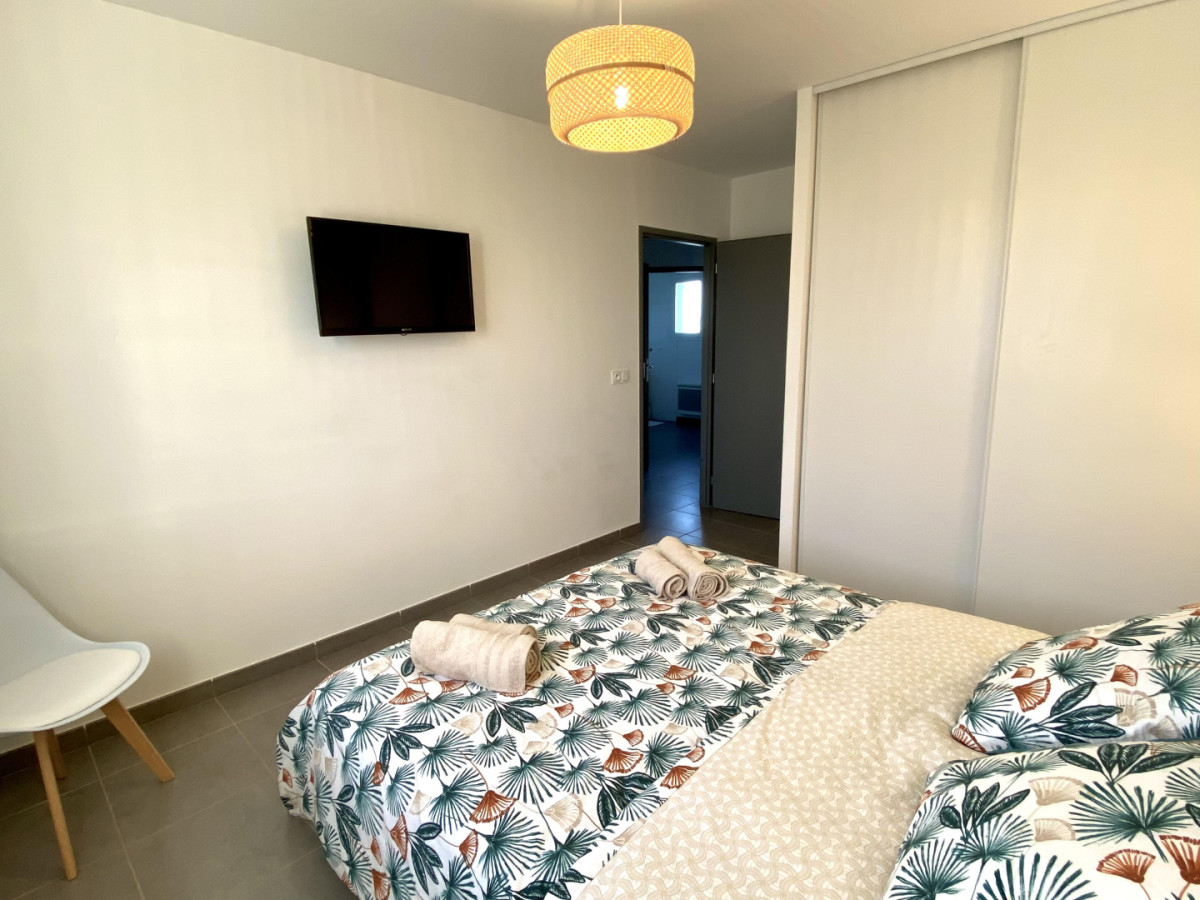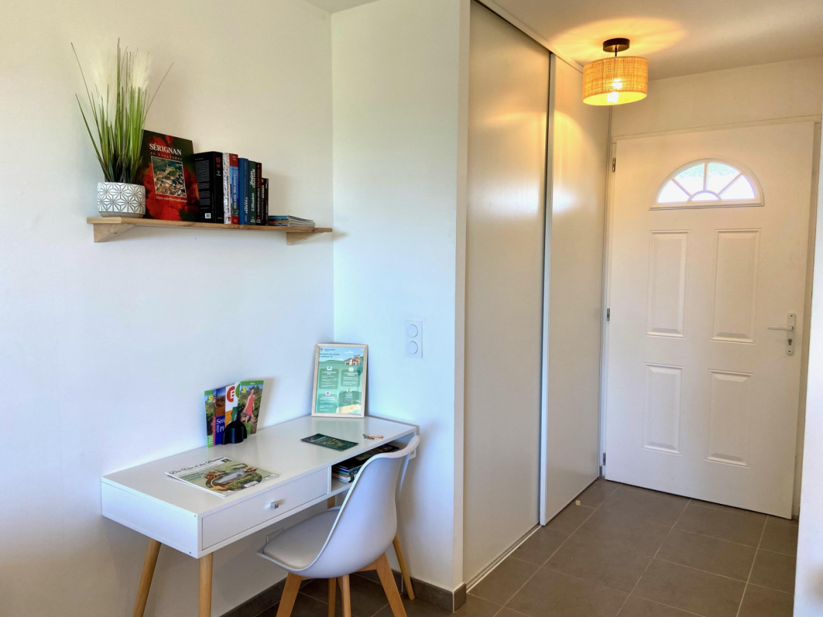 Le domaine est parcouru par de nombreuses pistes cyclables. Gîte totalement indépendant situé à l’étage d’une longère. VOTRE HEBERGEMENT: – Pièce à vivre lumineuse avec espace salon, coin bureau – Cuisine toute équipée ouverte sur le séjour (four, micro-onde, lave-vaisselle, réfrigérateur-congélateur, plaques de cuisson, cafetière à dosettes, grille -pain, bouilloire et tout le matériel de cuisine nécessaire). – Une chambre avec un lit double en 160×200 cm, écran télé, placard -penderie – Une chambre avec 2 lits en 90×200 cm qui peuvent s’assembler. – Salle d’eau avec lave-linge – WC indépendant – Parking et espace extérieur privatif avec table de pique-nique en bois, salon de jardin et barbecue. Gîte non-fumeur. Les lits seront faits à votre arrivée. Ce havre de tranquillité se trouve à 2 minutes en voiture d’un grand centre commercial, et à 4 minutes de la plage de Valras. ATTRAITS TOURISTIQUES Entre les vignobles environnants et la mer, le gîte Annabel est idéalement situé pour vous faire passer un agréable séjour dans l’Hérault : vous pourrez tout autant faire une balade dans les vignobles que faire un détour par la plage ou vous rendre dans les restaurants et commerces des environs. Le gîte se trouve à deux pas des plages, des restaurants et des animations de Valras- plage (Casino, marchés des producteurs, spectacles du Palais de la mer) mais vous pouvez aussi vous rendre à Sérignan – village pour y découvrir son marché, sa collégiale, son musée d’ art moderne, et l’œuvre in situ de Buren ou à Sérignan -plage pour y découvrir la magnifique plage de la Maïre, ou encore le site protégé des Orpellières et son musée Dado. Pour les amateurs de balades à vélo, tous ces sites sont accessibles par des pistes cyclables aménagées. Vous pourrez aussi faire des promenades paisibles le long des berges ombragées du Canal du Midi (Classé au patrimoine mondial de l’UNESCO) parsemées de ponts historiques et d’écluses pittoresques. Les 9 écluses de Fonseranes