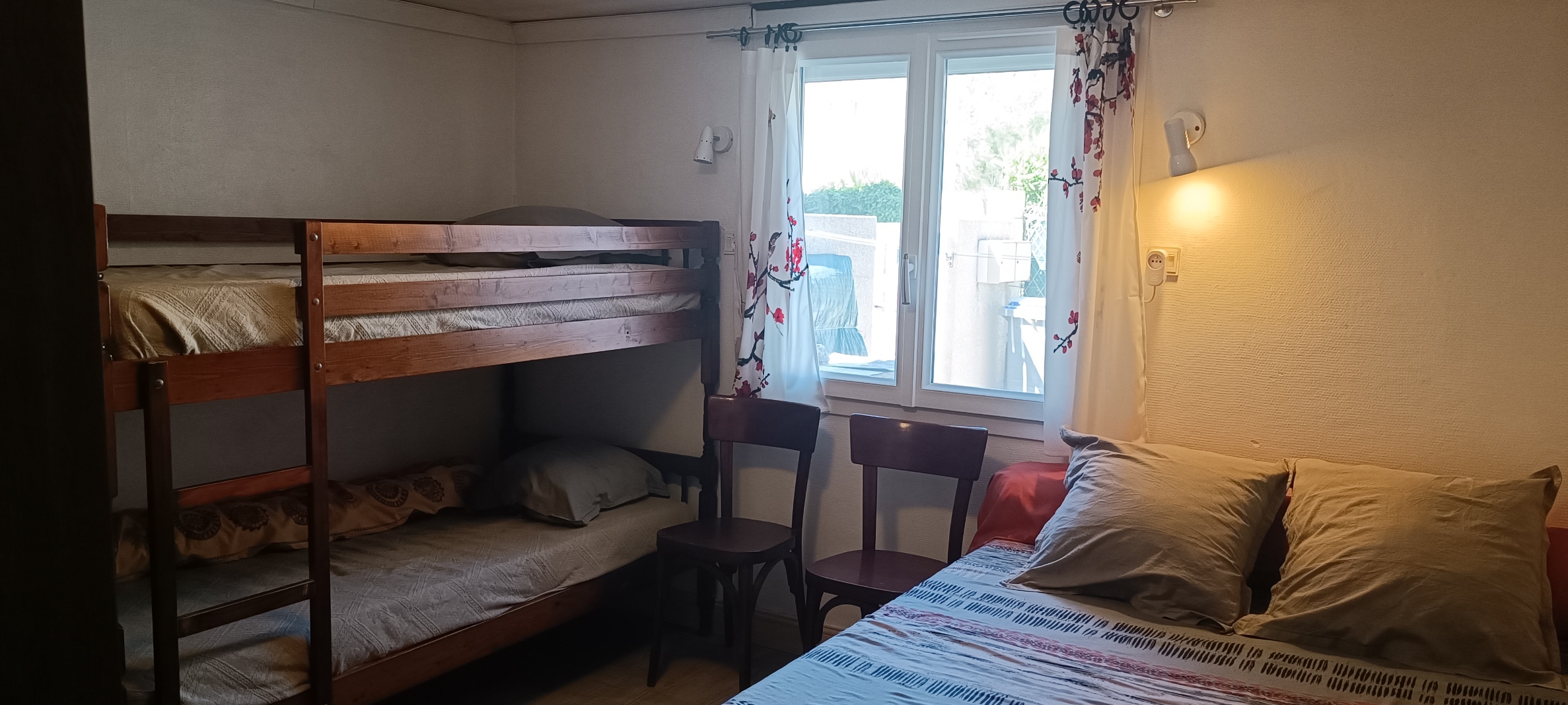 Appartement T3 pour 2 à 6 personnes dans maison, 55m2, en RDC, à 30 m de la plage, à 50m d’une pharmacie, épicerie, restaurants etc… et à 1500 m du centre-ville. Hébergement bien placé, ombragé et situé dans un quartier calme, 3 chambres.