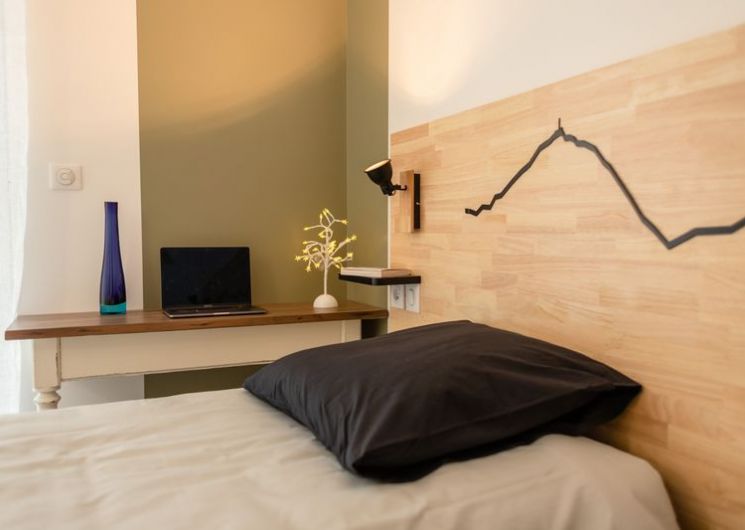 Chambre 1 : lit en 160cm (ou 2 lits de 80cm). Chambre 2 : lit en 140cm.