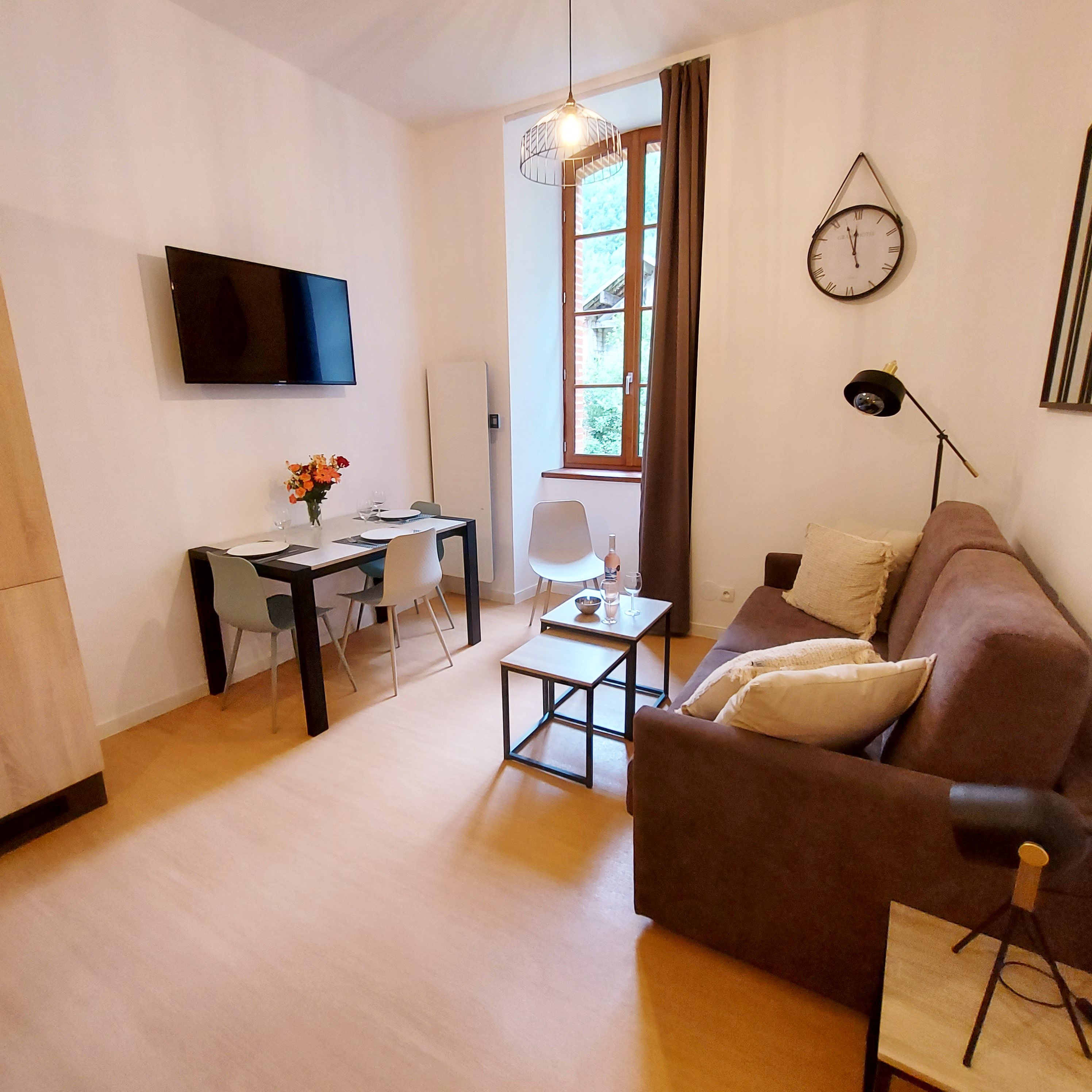 Idéalement situé au cœur du village thermale ce bel appartement se situe dans une belle bâtisse du 19ème siècle.