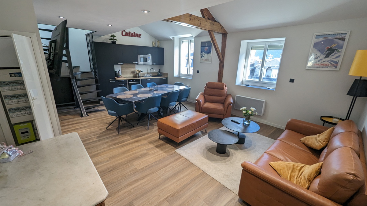 Notre appartement 3 est un spacieux T5 en duplex de 85 m² situé au troisième étage avec ascenseur, en plein cœur de Bagnères-de-Luchon.
