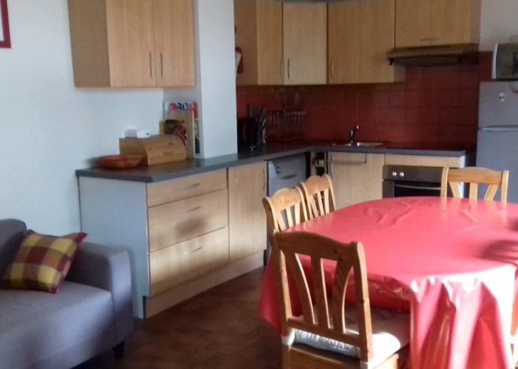 Appartement en rez-de-jardin de 60 m² comprenant : Une cuisine ouverte sur un séjour/salle à manger, 2 chambres (2 lits en 140 et 2 lits en 90), une salle d’eau (douche) et un WC indépendant. La location bénéficie d’un jardin clos privatif.