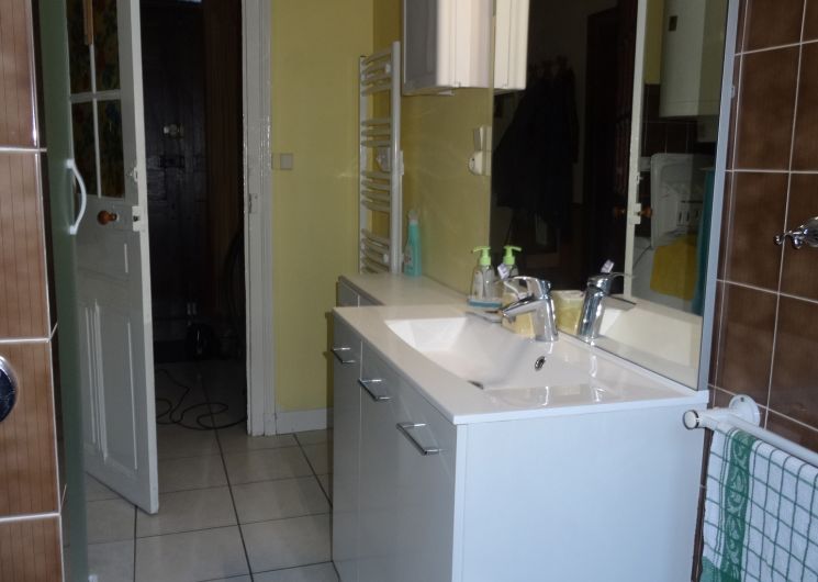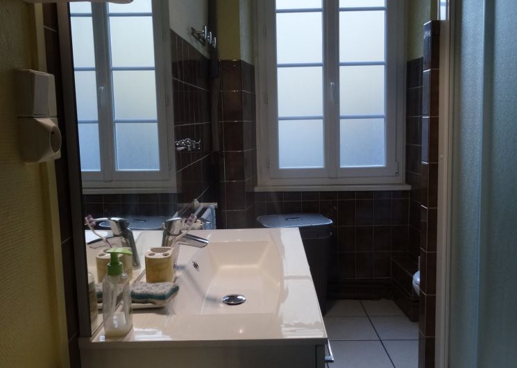Appartement de 73 m² comprenant : une entrée indépendante, un séjour/salle à manger/salon, une cuisine aménagée, 3 chambres (2 lits en 140 et 2 lits en 90) et une salle d’eau (douche) avec WC. La location bénéficie d’une terrasse privative couverte et d’une cour commune ainsi que d’un parking public gratuit à proximité.