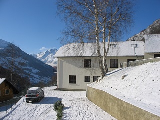 Maison entourée d’une grande prairie, avec 4 logements indépendants, sur le versant sud de la vallée, au calme et une belle vue sur la montagne. Appartement de plain pied avec grande terrasse pour 6 à 7 personnes.