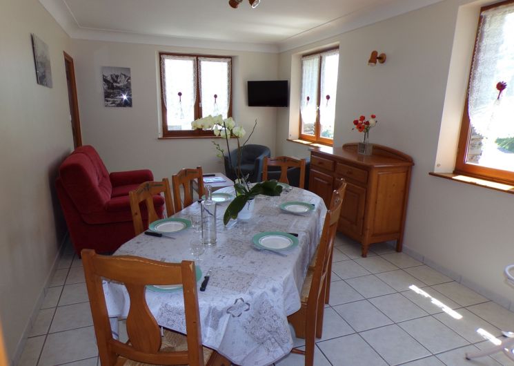 Appartement de 72m2 comprenant : Une cuisine équipée, une salle à manger avec un canapé et fauteuils, 3 chambres (1 lit en 140, 4 lits en 90), une salle de bain (baignoire) et WC indépendant. Terrasse et jardin. Parking public à 50m du logement. A savoir : lit bébé, rehausseur, services à raclette et à fondue à la demande. Linge de lit compris. Wifi.