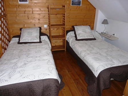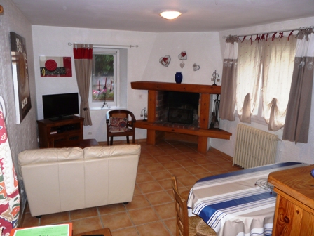 Rez de chaussée: Coin cuisine équipée Séjour avec cheminée 1 chambre avec 1 lit en 140 Salle de bain WC indépendant A L’étage: 1mezzanine avec 2 lits en 90 1 chambre avec 1 lit en 140 + 1 lit en 90 Salle de bain + wc