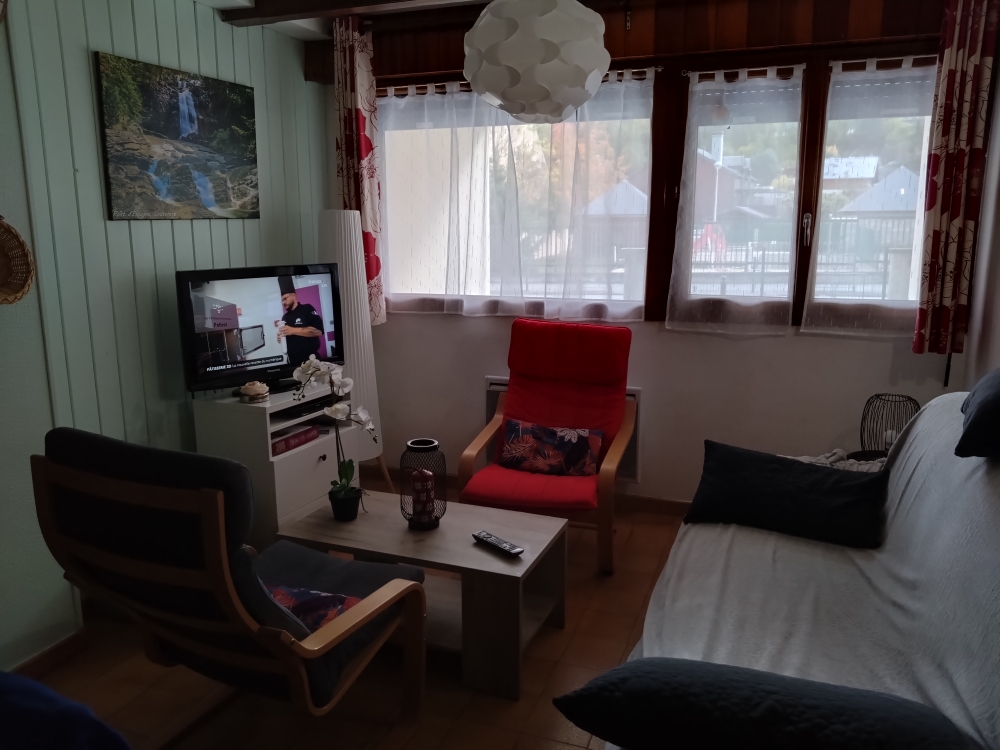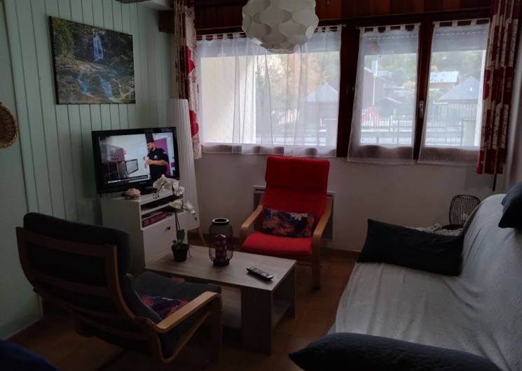 Appt F3, RDC, facile d’accès pour famille avec enfants et poussettes, et pour personnes âgées. 1 chien accepté. 2 chambres avec lits 140 cm et 1 lit 90 cm, séjour avec canapé lit. Cuisiné équipée. SDB et wc séparés. Local à ski. Concierge. Fenêtres ouvertes sur l’extérieur dans toutes les pièces.