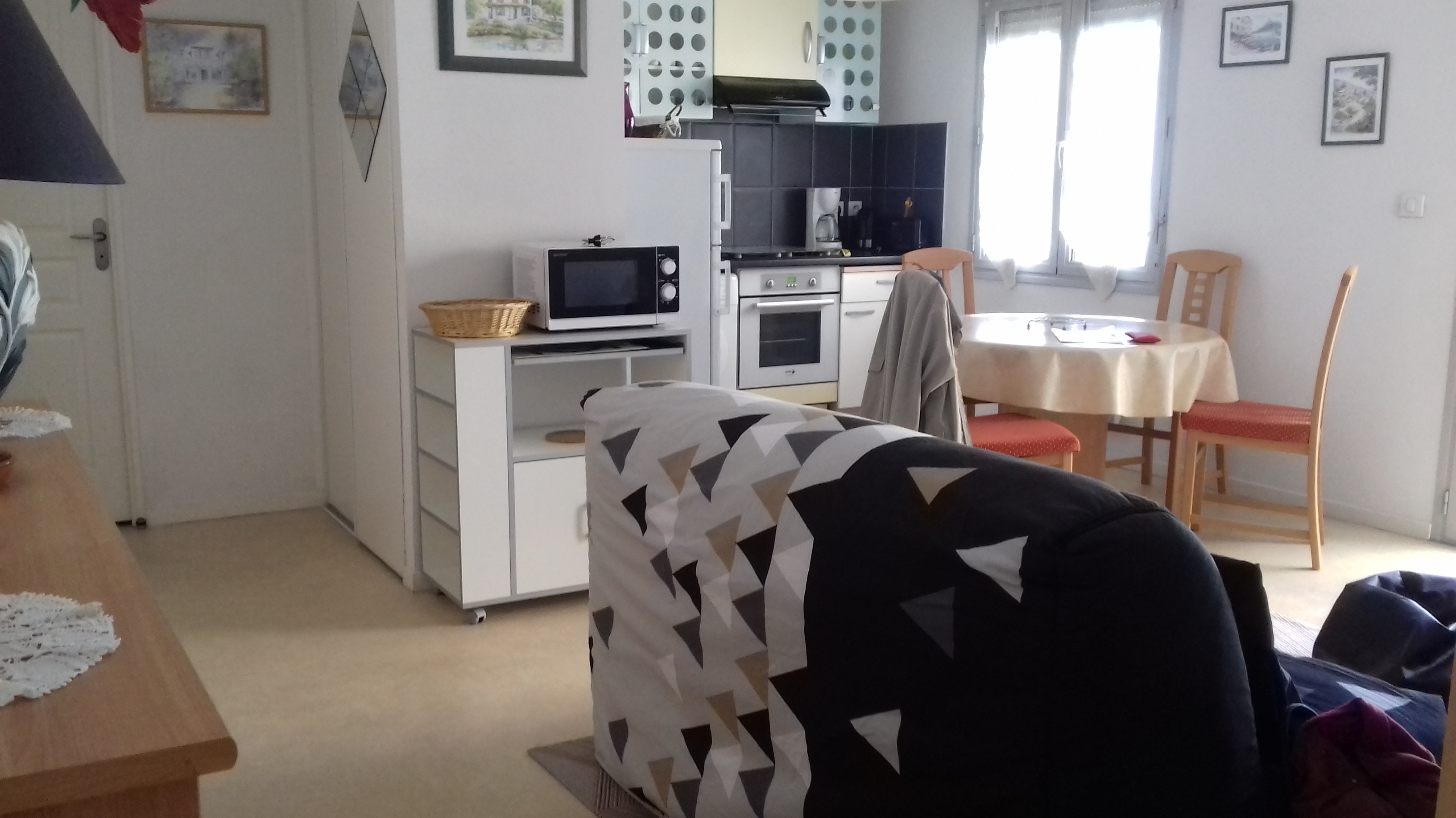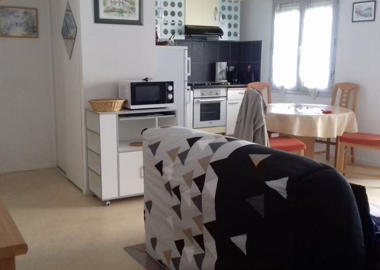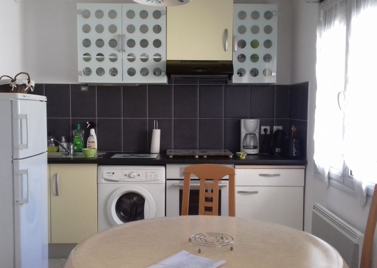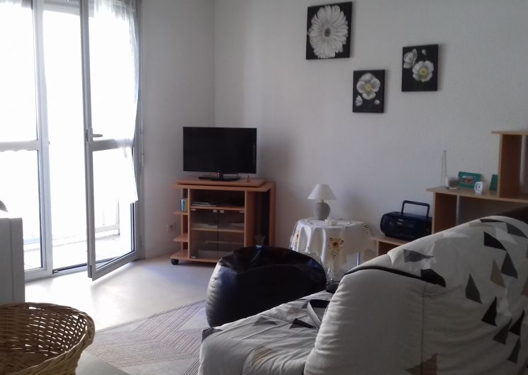 Appartement de 41 m² comprenant : Un séjour, une kitchenette équipée, un canapé BZ (en 140), une chambre (1 lit en 140), une salle de bain (baignoire) et un WC indépendant. La location bénéficie d’un balcon et d’un parking privé.