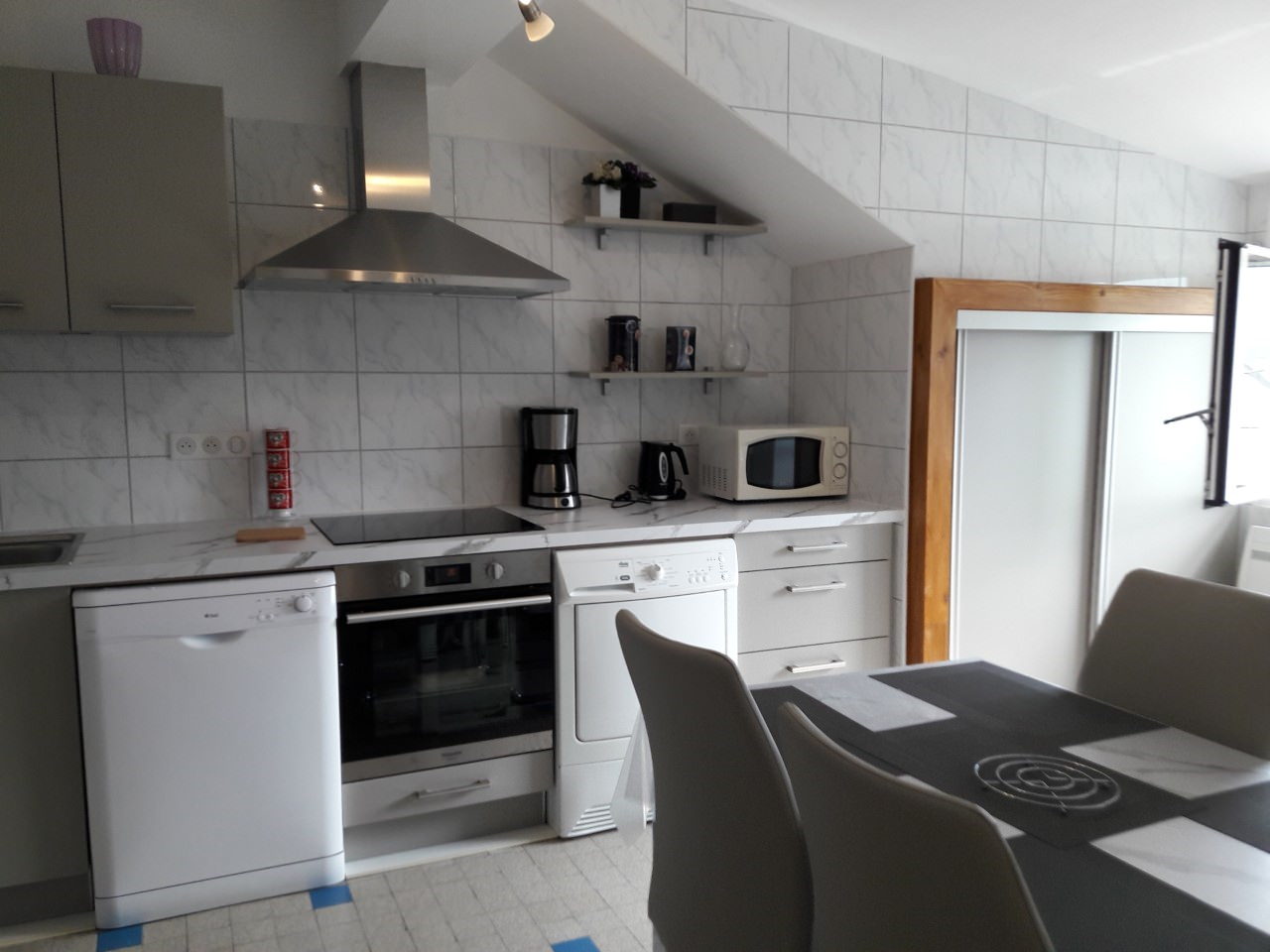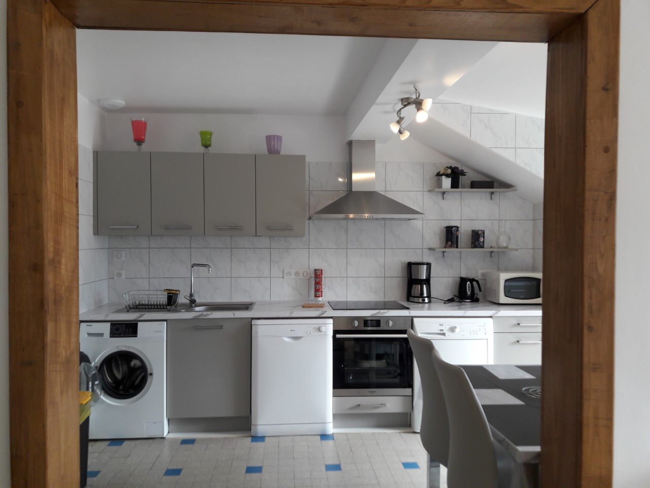 Appartement de 72 m² comprenant : Une cuisine équipée, un salon, 2 chambres (2 lits en 140 et 1 lit en 90), une salle d’eau (douche à l’italienne) et un WC indépendant. La location bénéficie d’une cour commune à la résidence et d’un garage et parking