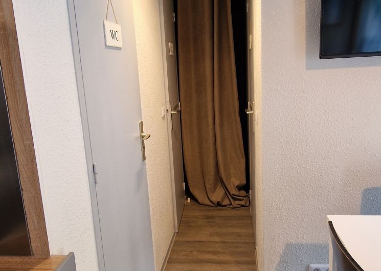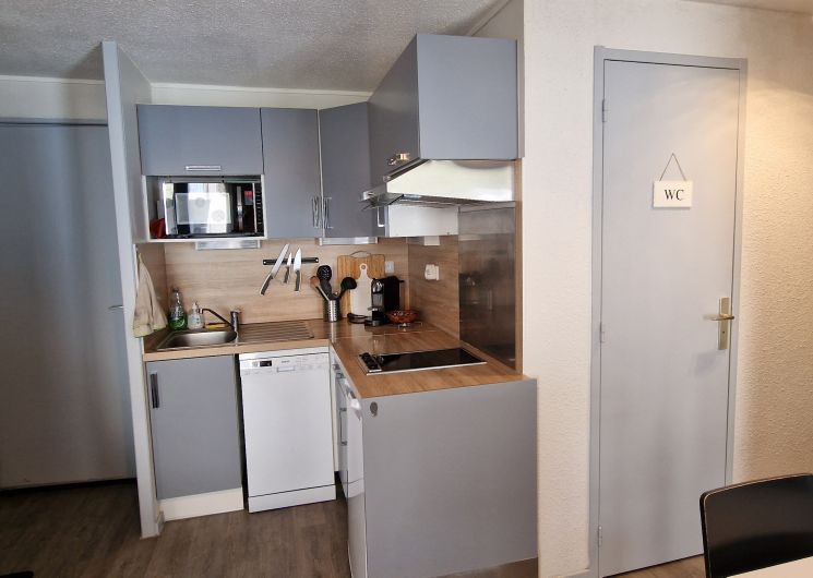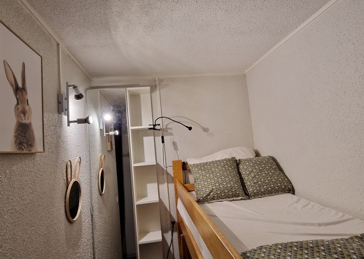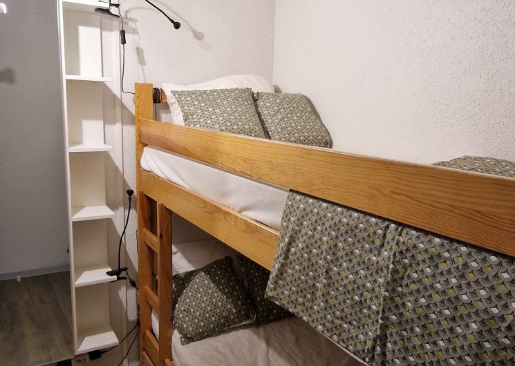 Appartement de 28 m² comprenant : Un séjour avec un canapé lit (2 personnes), une cuisine équipée, une chambre (1 lit en 140), un coin nuit (2 lits en 90 superposés), une salle d’eau (douche) et un WC indépendant. La location bénéficie de 2 balcons, d’un local à skis et d’un parking.