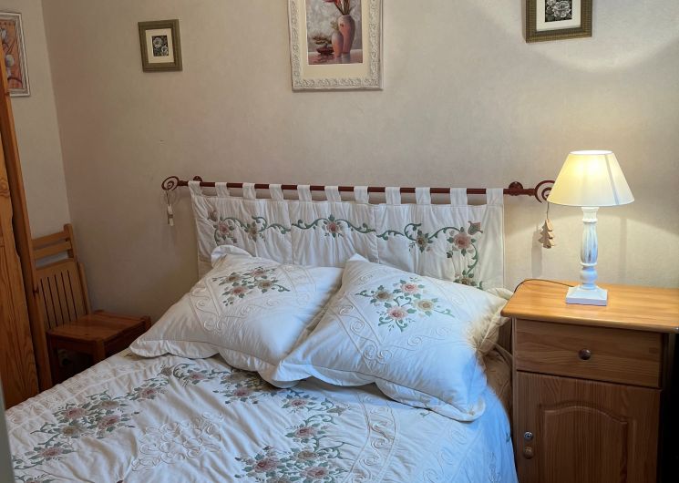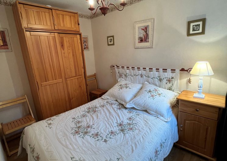 La chambre, confortable, comprend un lit double (140 cm) et une armoire de rangement.