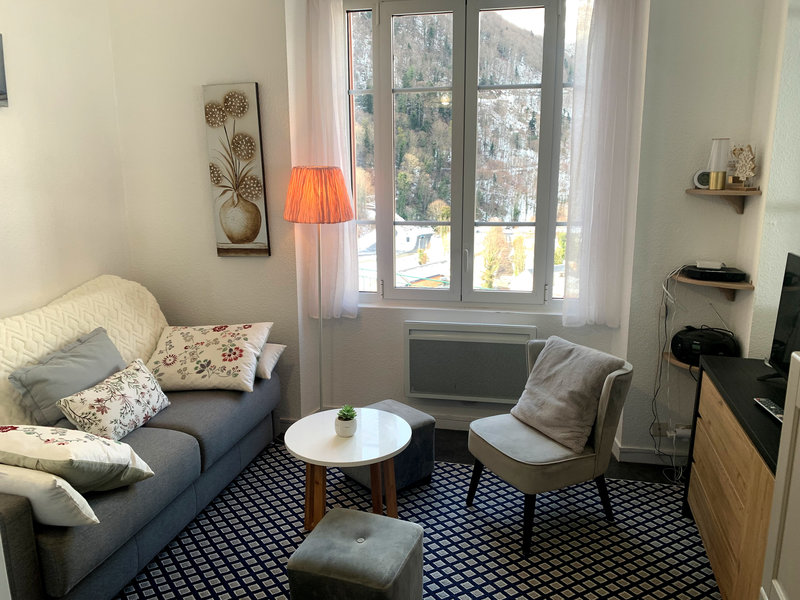 Offrez-vous un séjour tout confort dans notre appartement cosy récemment rénové, situé dans une petite résidence à seulement 450 m des thermes et du centre ville et à 700 m de la télécabine du Lys. Très lumineux, il bénéficie d’une superbe vue panoramique sur la montagne et le centre ville, à admirer pleinement depuis le jardin privatif. En rez-de-jardin, cet appartement est parfaitement équipé pour des vacances reposantes. Il convient aussi bien aux couples qu’aux familles en quête de calme et de confort. Vous profiterez d’un jardin paysagé clos de 300 m2 avec salon de jardin, transats et barbecue. Wifi gratuit et parking privé à disposition. Draps fournis, location de serviettes et torchons. Accès privatif par 8 marches. Tarif spécial cure. Animaux acceptés en été (voir conditions). .