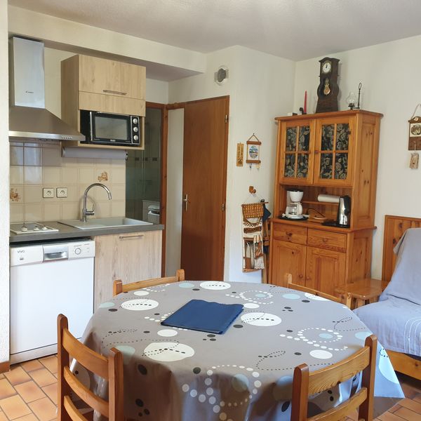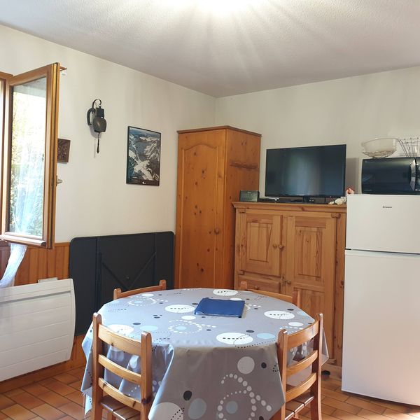 Le chalet est situé dans une résidence au calme avec parking privé. L’appartement (32m²) est au rez de chaussée du chalet qui comporte deux autres appartements. Pour accéder au chalet il y a une quinzaine de marches au pied du parking. Situé à l’entrée du village (1km des thermes et des commerces et des télécabines), une navette gratuite (week-end et vacances scolaires) passe au pied de la résidence. Il y a 1 chambre avec un lit 140 (fenêtre exposition EST), un séjour avec un clic clac (2 pers) (exposition Ouest). Une kitchenette avec plaques vitrocéramiques, micro-ondes, appareil à raclette, lave-vaisselle, lave-linge, TV, lecteur DVD. Salle de douche (douche à l’italienne)(fenêtre expo Est). WC indépendants. Jardin clos, barbecue, salon de jardin. .