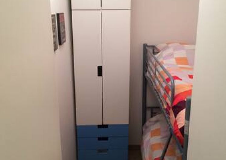 Chambre 1 : 1 lit en 140 cm Chambre 2 : 2 lits superposés en 90 cm