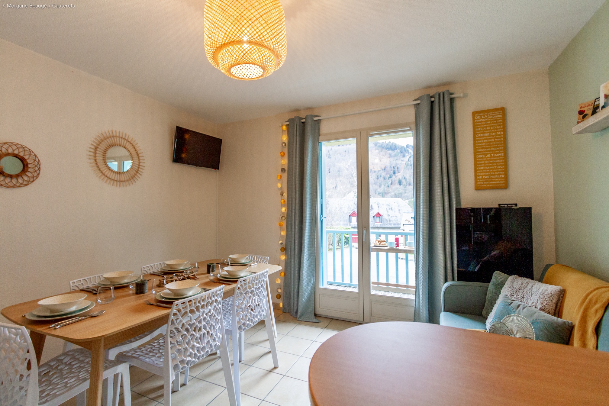 Cet appartement en rez-de-chaussée dispose de nombreux atouts ! Tout d’abord, vous n’êtes qu’à quelques minutes à pied du départ de la télécabine du Lys et des Thermes de César. Un parking privé facilitera également vos déplacements. L’espace salon/salle à manger donne directement sur un balcon aménagé offrant une magnifique vue sur les montagnes environnantes. Côté couchages : 1 chambre avec un lit en 140cm et une autre chambre avec deux lits en 140cm. Un coin nuit atypique pour les adolescents (accès par une échelle de « meunier ») avec 3 couchages supplémentaires disponibles. Vous serez séduits par cet appartement modulable et entièrement équipé. Et cerise sur le gâteau, les lits sont faits à votre arrivée, vous n’aurez plus qu’à poser vos valises ! .