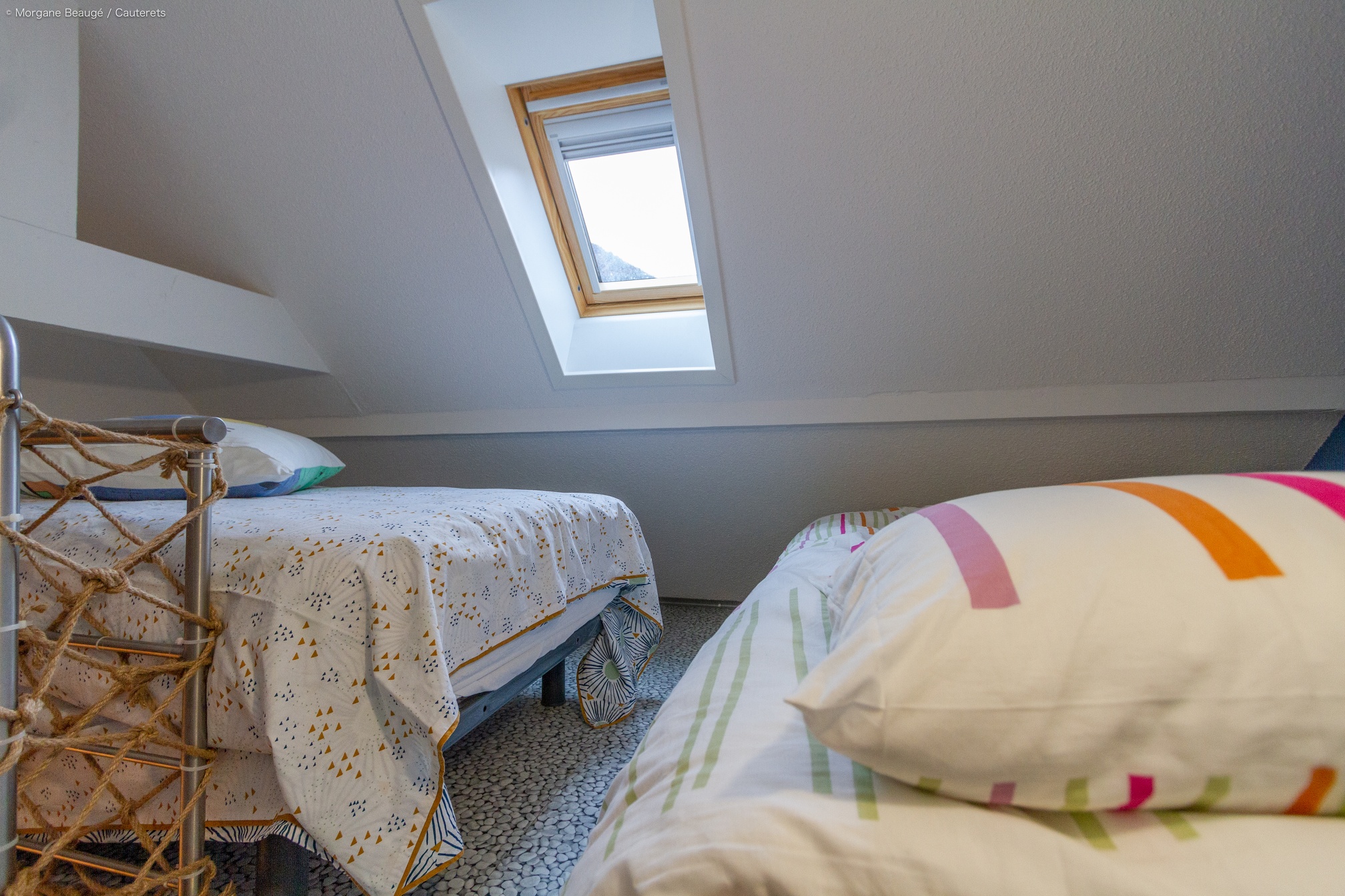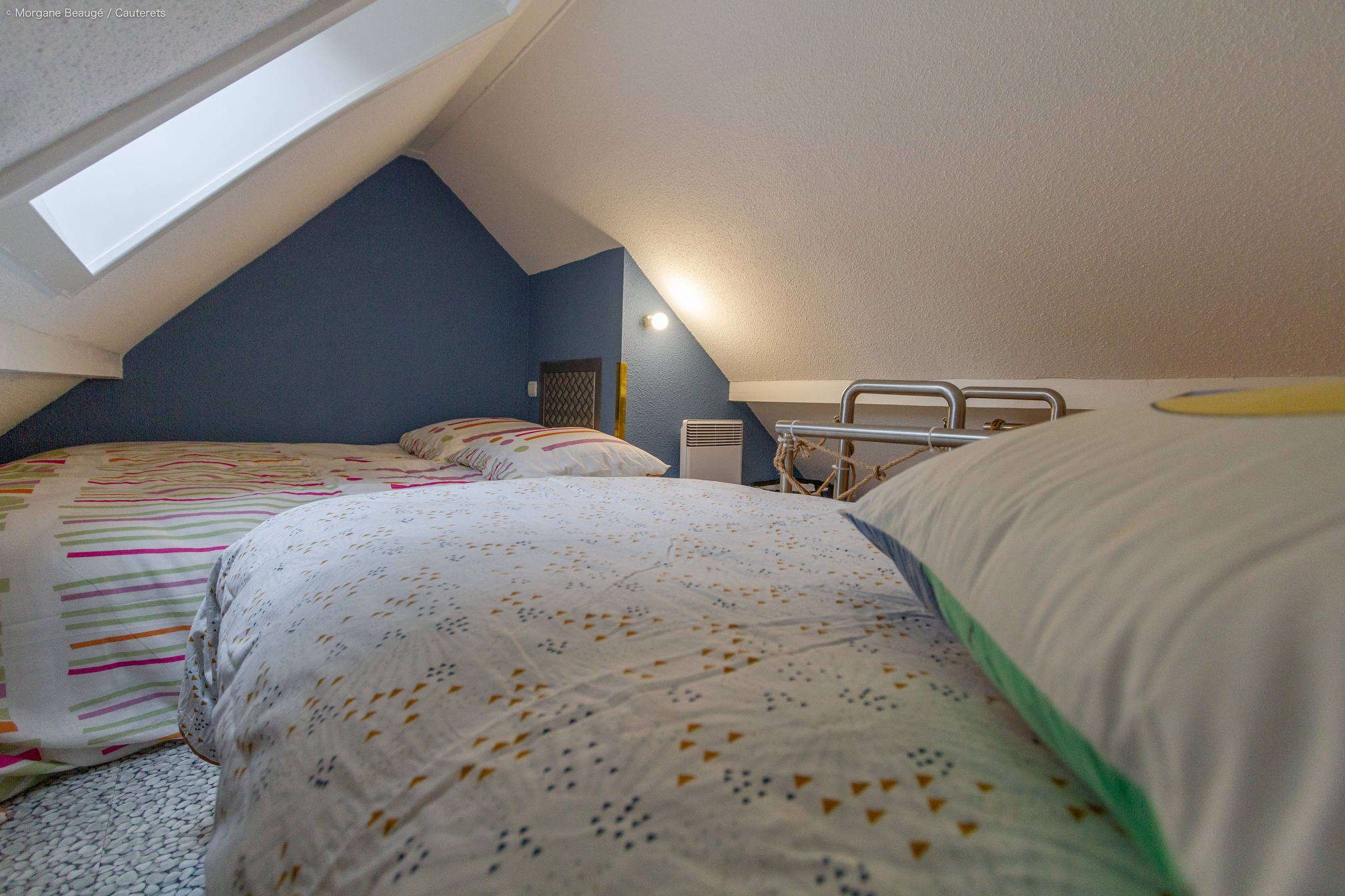 Chambre 1 : 1 lit en 140 cm Chambre 2 : 2 lits en 140 Coin nuit atypique pour les adolescents (accès par une échelle de « meunier ») avec 3 couchages supplémentaires disponibles : 3 lits en 90 cm