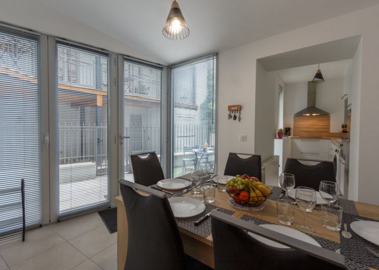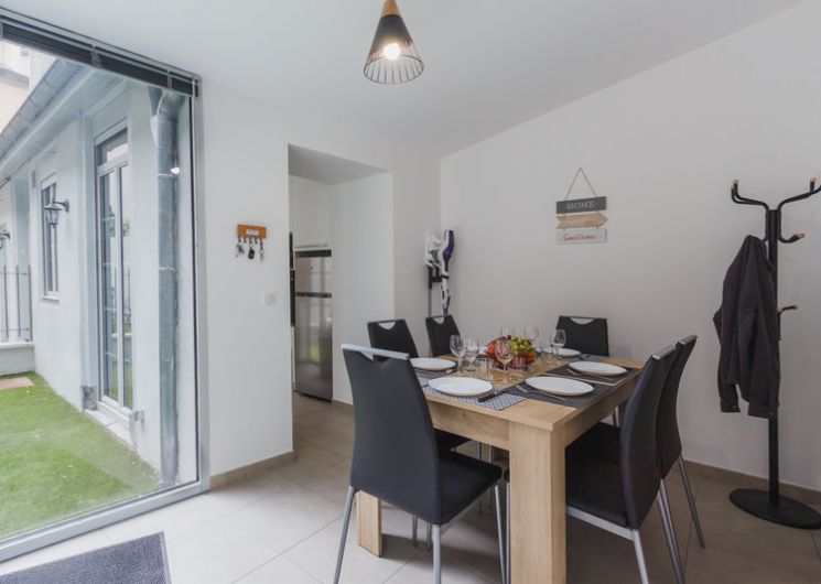 Niché au cœur de Cauterets, ce T2 bis rénové de 57 m² (2022/2025), en rez-de-chaussée avec cour intérieure, allie confort et calme pour 4 à 6 personnes. Idéalement situé à 100 m du centre, des navettes et des commerces, il permet de tout faire à pied : pistes, thermes, balades, restaurants. L’appartement comprend une salle à manger avec cuisine moderne équipée, un salon cosy avec grand canapé convertible et TV, une chambre double avec dressing, un coin nuit avec lits superposés, une salle de bains avec grande douche et WC séparés. Literie neuve (2025), Wi-Fi fibre, petit jardin privatif clos, local à skis, lit parapluie et chaise haute complètent ce cocon pratique et chaleureux. .