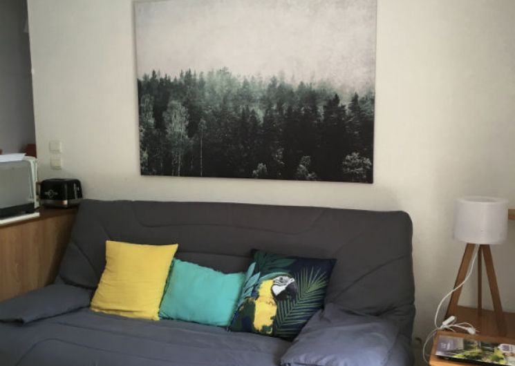 Appartement de 35 m² comprenant : Une cuisine ouverte sur le séjour, 2 chambres (1 lit en 140 et 1 lit en 120). La location bénéficie d’un jardin privatif sans vis à vis, non clos, et d’un local à ski/vélo et d’un place de parking privative à 10 m.