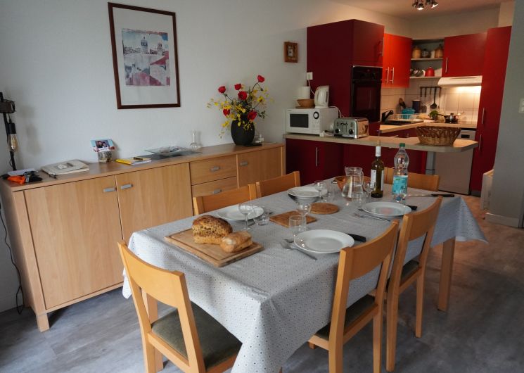 Votre hébergement : Appartement G23 d’une superficie de 60m² sur 2 niveaux ( 3 marches): – Cuisine -Séjour – Salon avec canapé – 1 chambre avec 1 lit en 1.40 – 1 chambre avec 3 lits en 0.80 dont 2 superposés – 1 coin cabine avec 1 couchage 1 personne BZ – une salle d’eau – WC séparés – terrasse couverte, ensoleillée et protégée du vent – jardinet (47m²) – WIFI .