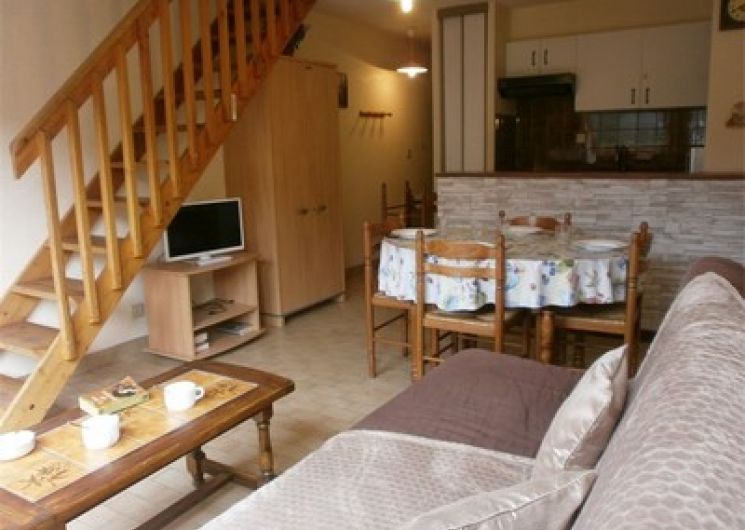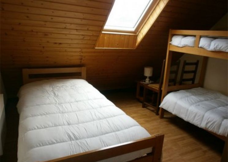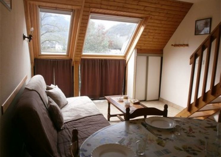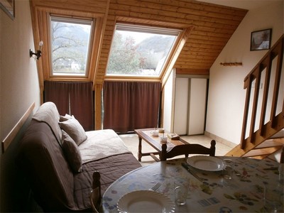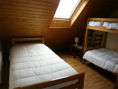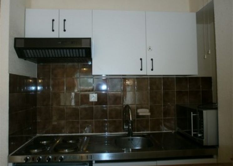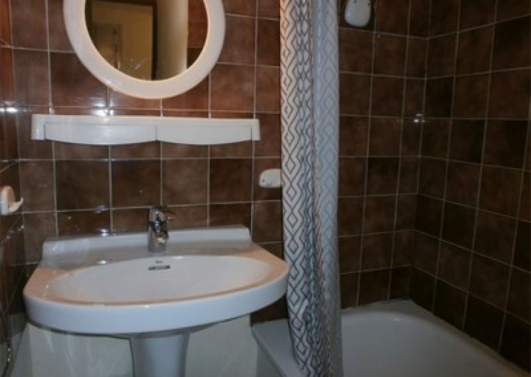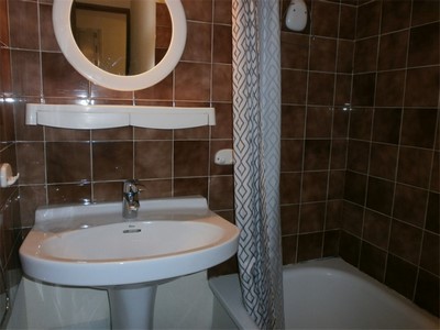 T3 en Duplex, 6 personnes – 33 m2 environ – 2ème Etage – Exposition Sud Séjour avec canapé lit clic–clac et télévision Kitchenette équipée avec 4 plaques électriques, four combi micro-ondes Salle de bain (baignoire sabot) – WC indépendant A l’étage : 1 chambre avec 1 lit en 140 1 chambre avec 2 lits superposés en 90 + 1 lit en 90 Casier à skis – Parking devant la résidence