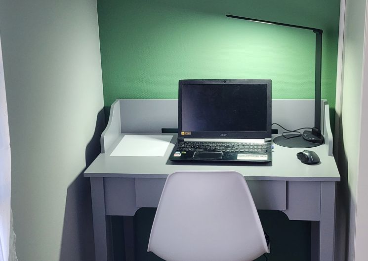 Il est équipé du WIFI, dispose d’un espace de travail.