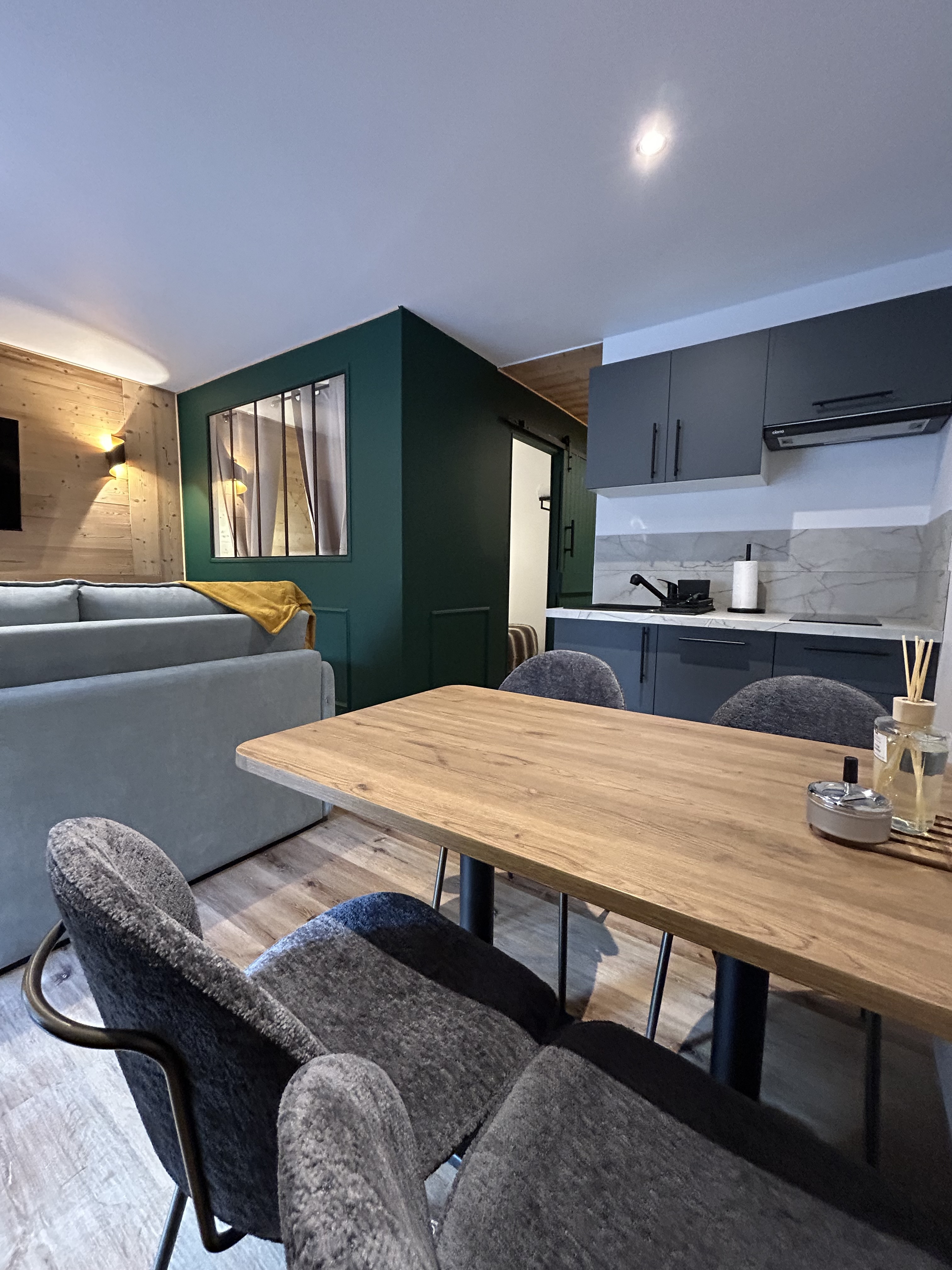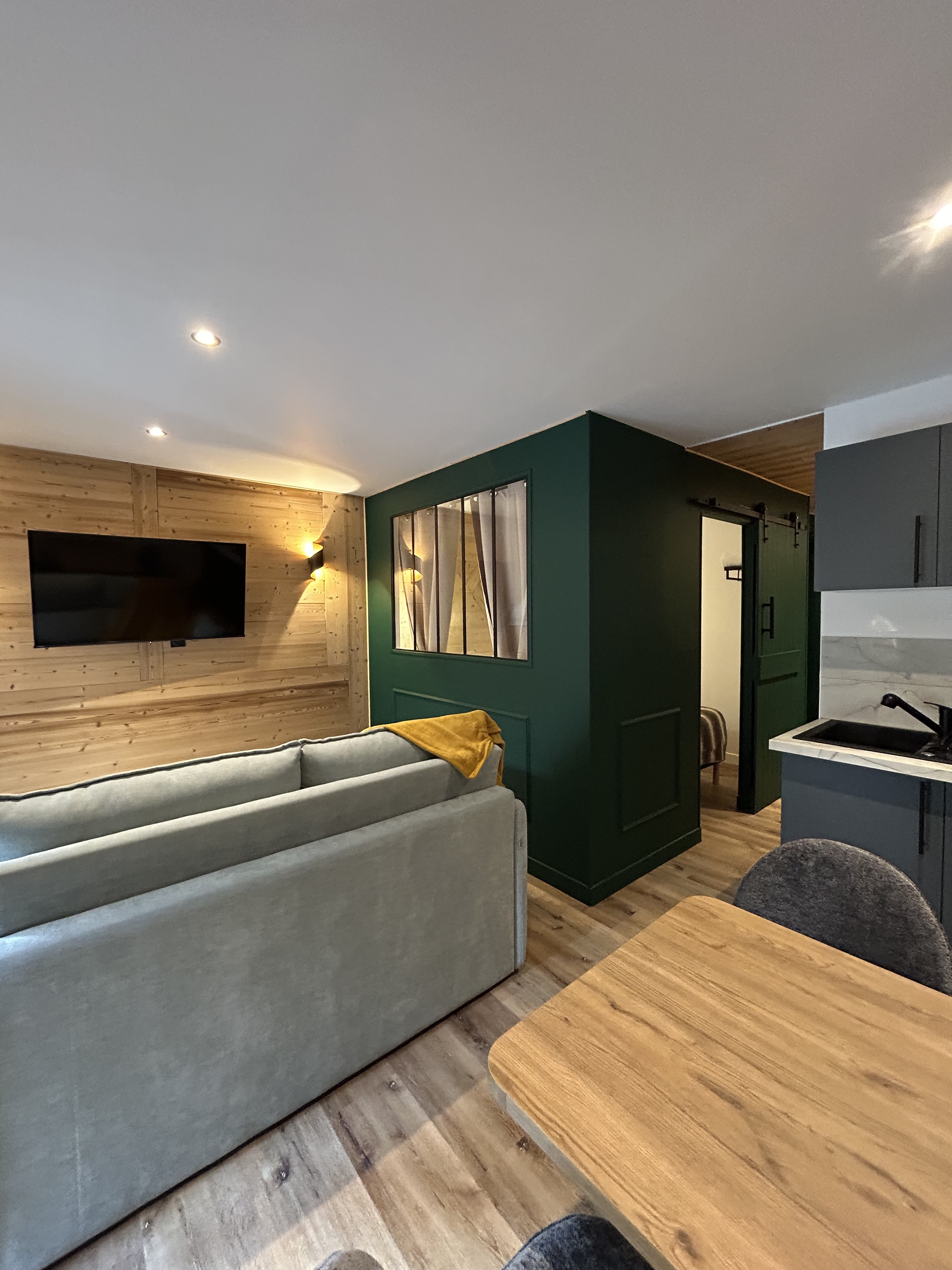 Suite Verrière – Dormir vraiment bien Chambre avec lit queen-size 160 cm et verrière atelier, signature du Dolce Vita. Salon indépendant avec vrai canapé-lit confortable (idéal 1 adulte ou 1 enfant). Literie haut confort pensée pour des nuits réparatrices après ski ou randonnée. ?? Parfait pour télétravailler Wi-Fi haut débit, stable et fiable Espace calme et lumineux Ambiance cosy idéale pour travailler ou déconnecter ?? Cuisine équipée pour vivre comme à la maison Four, plaques, micro-ondes, cafetière… Tout ce qu’il faut pour vos petits déjeuners avant les pistes ou vos dîners après une journée en montagne. ?? Salle de bain moderne + WC séparés Un confort rare et très pratique quand on est deux ou trois. .