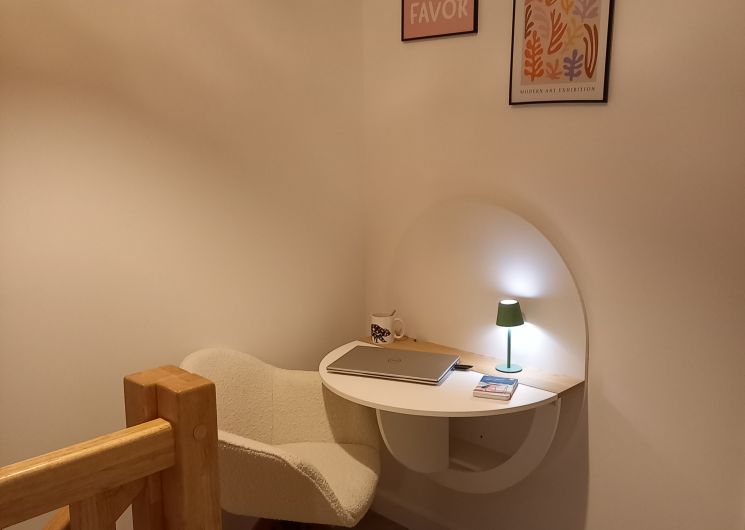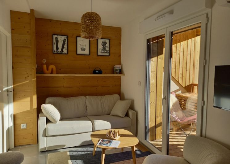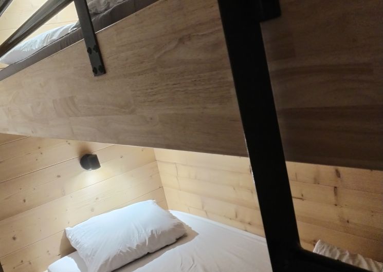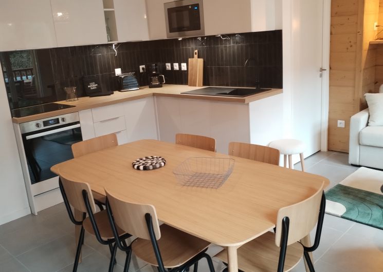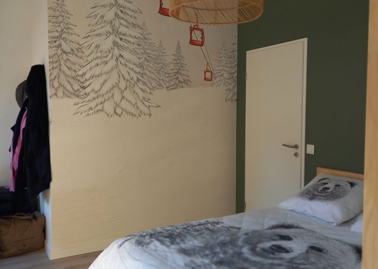 Logement classé 4 étoiles A l’étage • Chambre parentale avec 1 lit double (140×190) et un lit de 80 x190 • 1 cabine avec 2 lits superposés (90×200) • Salle d’eau avec douche • Coin bureau Au rdc • Cuisine équipée( four, plaques, micro ondes, lave vaisselle, frigo avec congélateur, appareil a raclette et appareil à fondue) • Salon avec canapé convertible 140×190 ( matelas bultex ?) • WC avec lavabo et machine à laver En extérieur , un grand balcon pour déjeuner au soleil Emplacement de 1er choix au calme et à 5 min a pied du centre du village En face de la résidence Boulangerie CEBOLLA Loueur de ski( skiset et skimium) Restaurant Le Böbby A 50 m, arrêt de Navette gratuite tout les 20 min menant aux télécabines et au téléphérique Autres équipements Place de parking privative Casier à ski dans local chauffé Local vélo sécurisé
