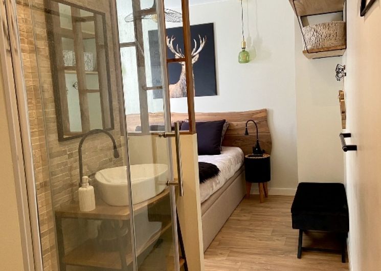 Il est composé d’une suite parentale avec salle d’eau et TV, d’une cabine fermée avec 2 ou 3 couchages avec TV, d’une cuisine ouverte, d’un séjour avec TV connectée et canapé convertible (couchage confort), d’un WC séparé, d’une 2ème salle de bain, d’un agréable petit balcon et d’un garage avec espace vestiaire à ski. L’appartement est équipé d’un lave-vaisselle, d’un four combiné, d’un grand réfrigérateur, d’une plaque induction, d’une Nespresso et cafetière filtre, appareils à raclette et à fondue, divers petits électroménagers, bien équipé en vaisselle et ustensiles de cuisine . L’appartement est classé 5 diamants au label. Animaux non admis .