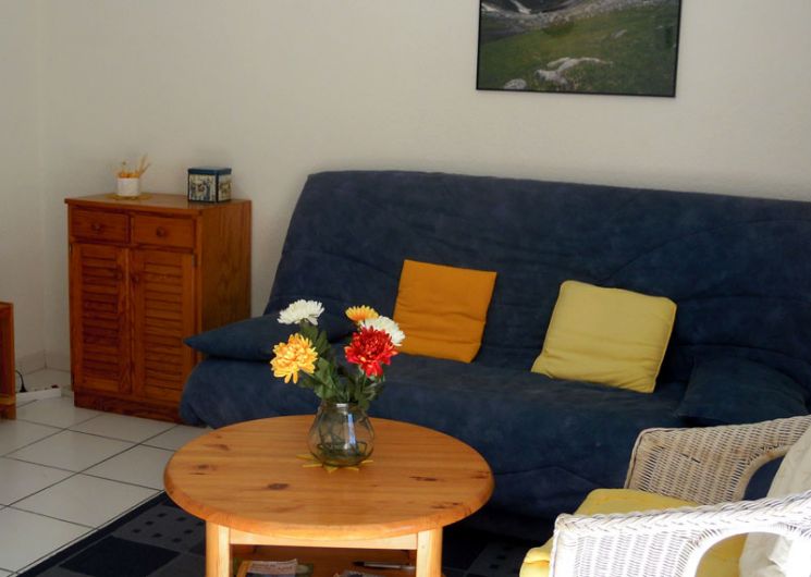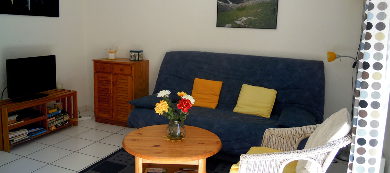 Cuisine américaine. Séjour. Canapé convertible 2 personnes. Chambre avec lit 140 et penderie. Chambre avec 2 lits 90 et penderie. Balcon plein sud.