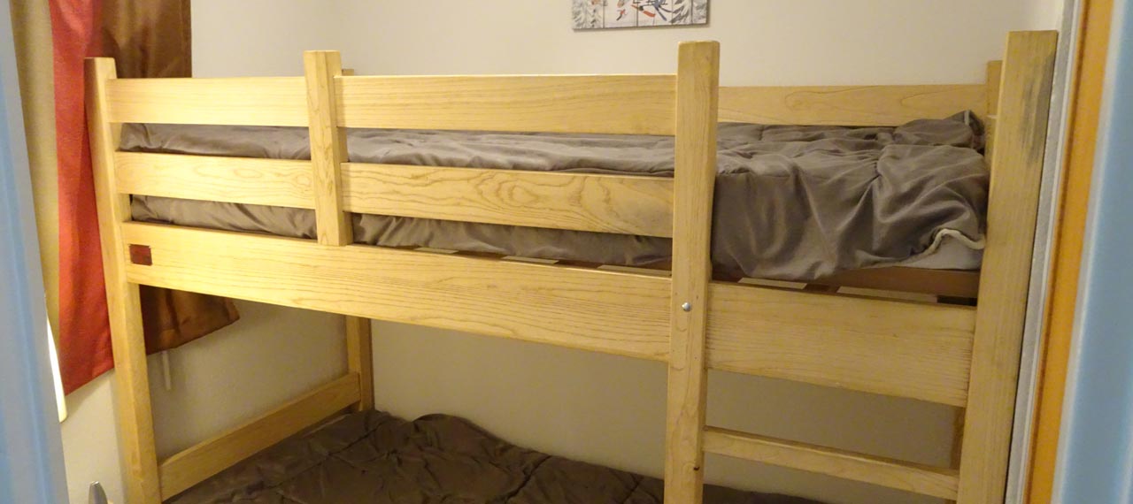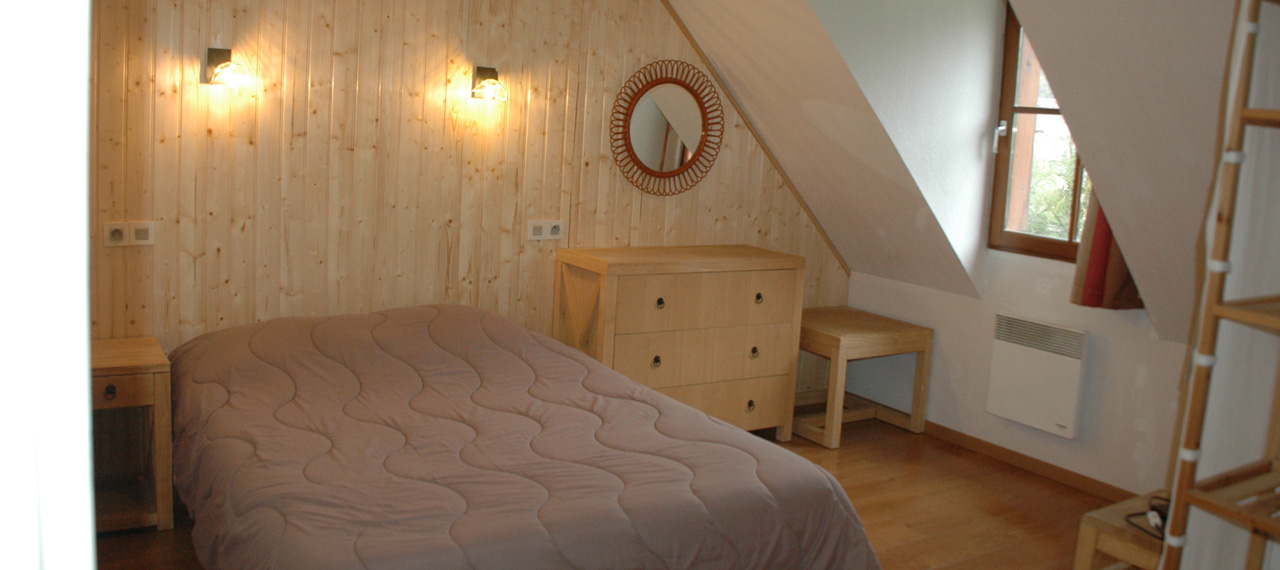 Séjour. Chambre avec lit 140. Chambre avec 2 lits superposés. Chambre avec 3 lits 90.