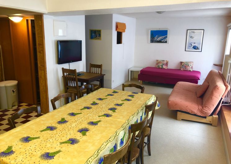 Appartement de 90 m² comprenant : Une grande pièce de vie avec coin salon/salle à manger et une cuisine, 3 chambres (une avec 1 lit en 140 et salle d’eau (douche) et WC, une avec 2 lits en 90 et salle de bain (baignoire) et WC et la dernière avec 2 lits en 90 et salle d’eau (douche) et WC), une petite chambre cabine (2 lits de 90 superposés) et un WC indépendant. Linge de maison fourni. Wifi gratuit.