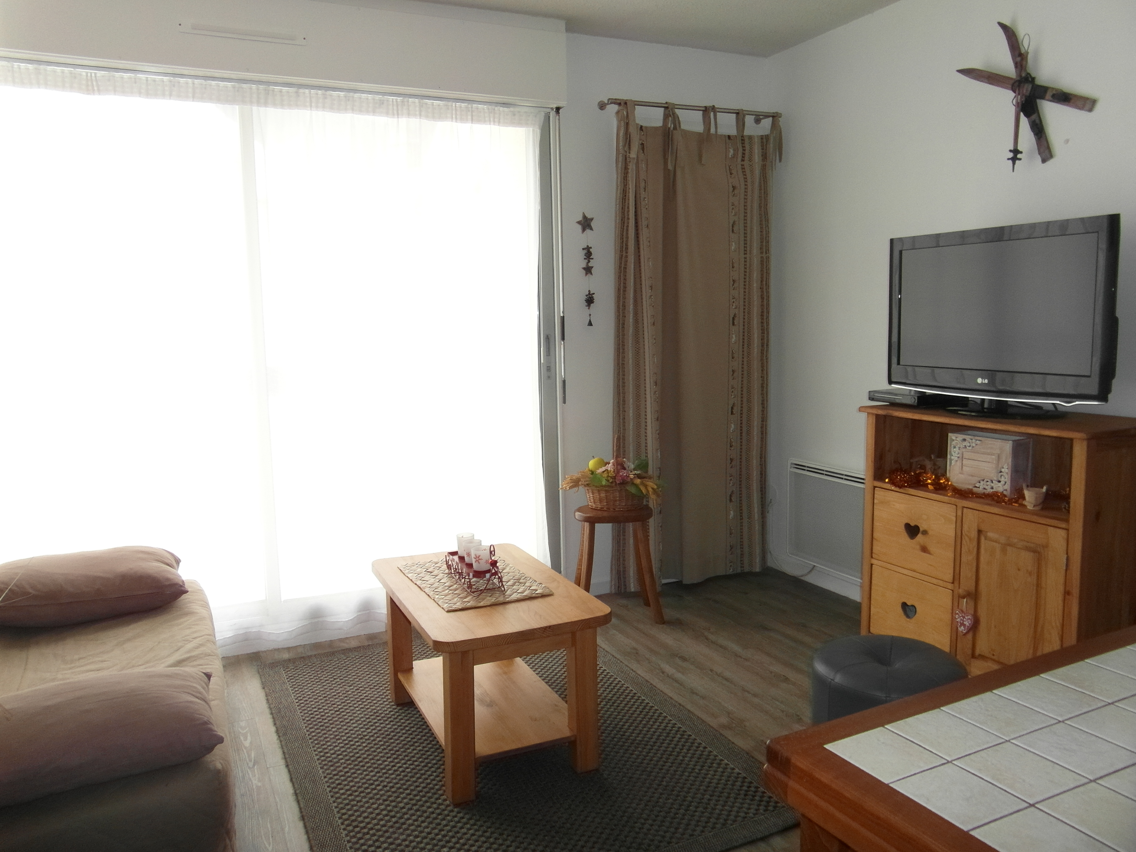 Appartement au sein de la résidence des THERMES à 5 Mn du centre-ville parfaitement située pour la saison d’ETE comme pour celle d’HIVER (à 5 mn des thermes et à 10 Mn du Télécabine) qui bénéficie d’une belle exposition. Il dispose d’un vrai salon (Canapé BZ) pouvant s’aménager en 2ème chambre pour la nuit par la fermeture d’un rideau accordéon le séparant de la partie cuisine. Cuisine aménagée entièrement équipée avec plaque vitro-céramique, four combiné micro-ondes, réfrigérateur, lave-vaisselle. Chambre avec lit 140 (2 personnes). TV grand écran ; Lecteur DVD. Lave-linge dans SDB avec à disposition table et fer à repasser. .