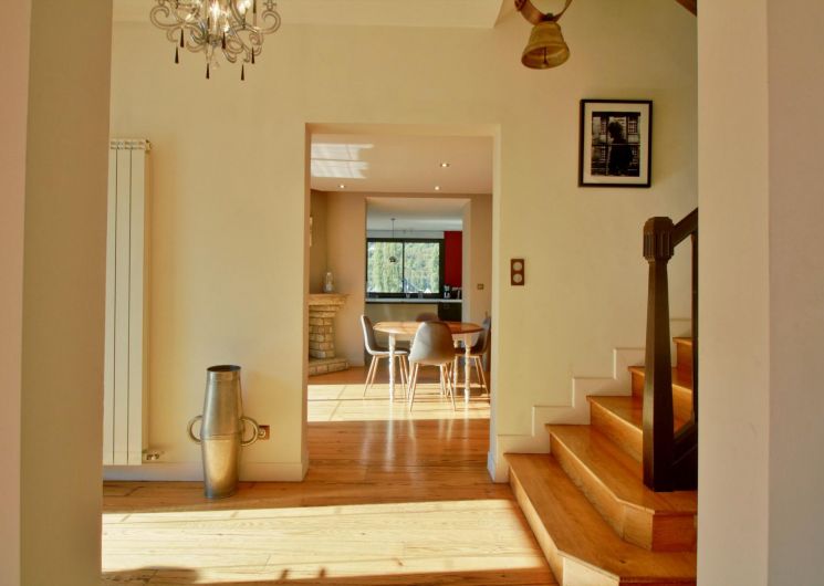 Cette demeure arbore un style éclectique, exploite ses larges ouvertures pour une luminosité optimale et ses espaces généreux pour un esthétique alliant parquets anciens et ambiance contemporaine. L’enfilade des pièces de vie sans porte annoncent déjà toute la convivialité et le partage d’un séjour réussi. A l’extrémité du bâti, un duplex en étage, permet de combiner un séjour entre amis et famille pour une capacité totale de 10 personnes. .
